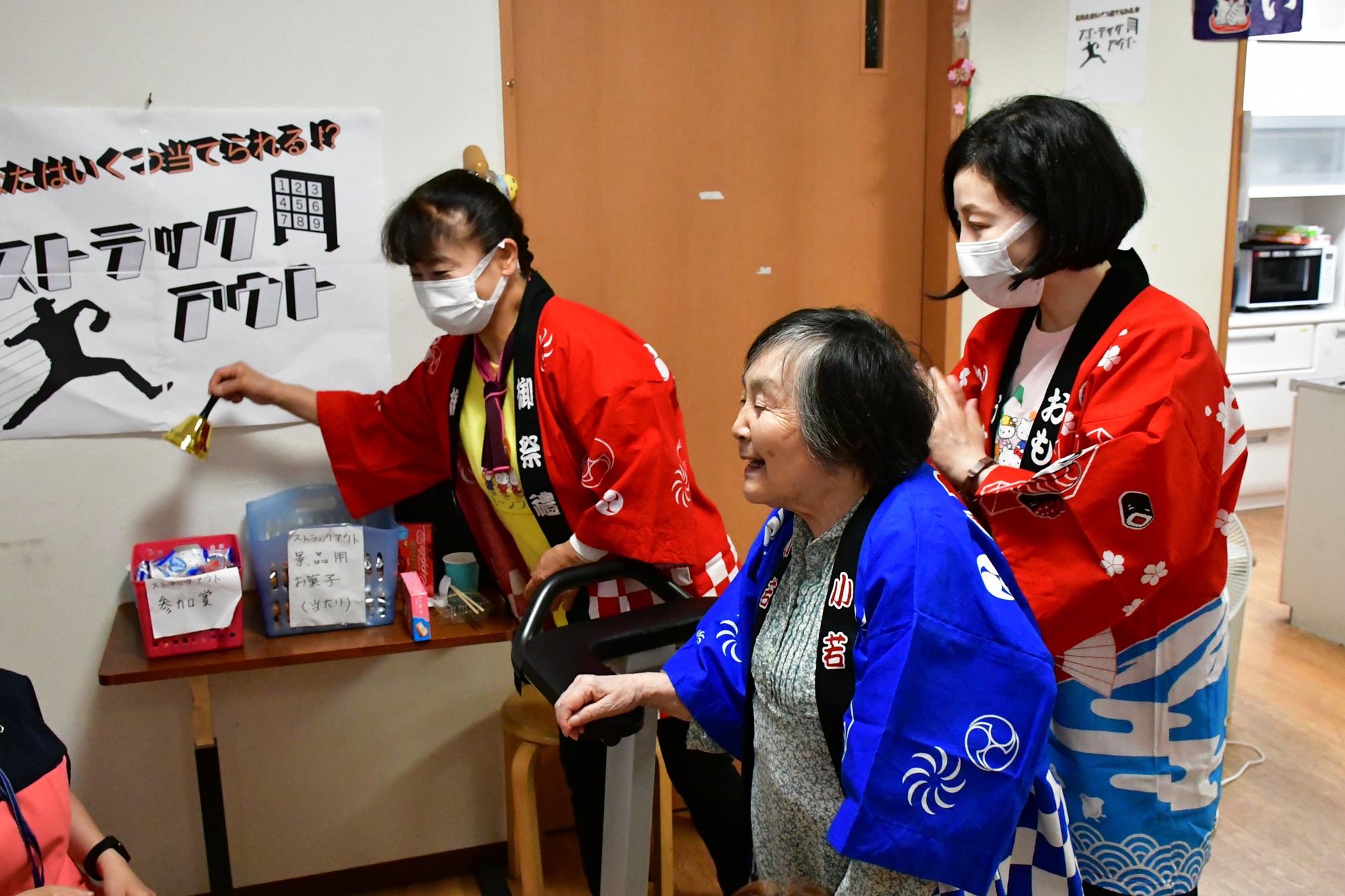 スタッフも入居者様もはっぴを着てお祭り気分!