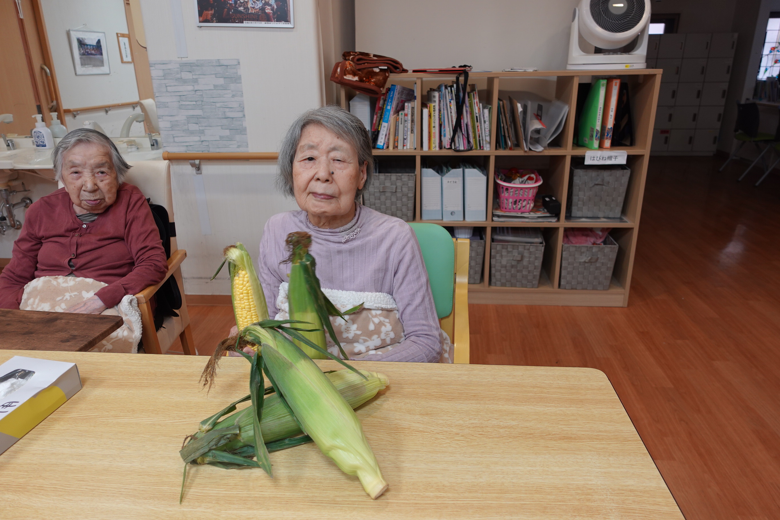 皆さまで大きなトウモロコシと一緒にお写真を撮りました!