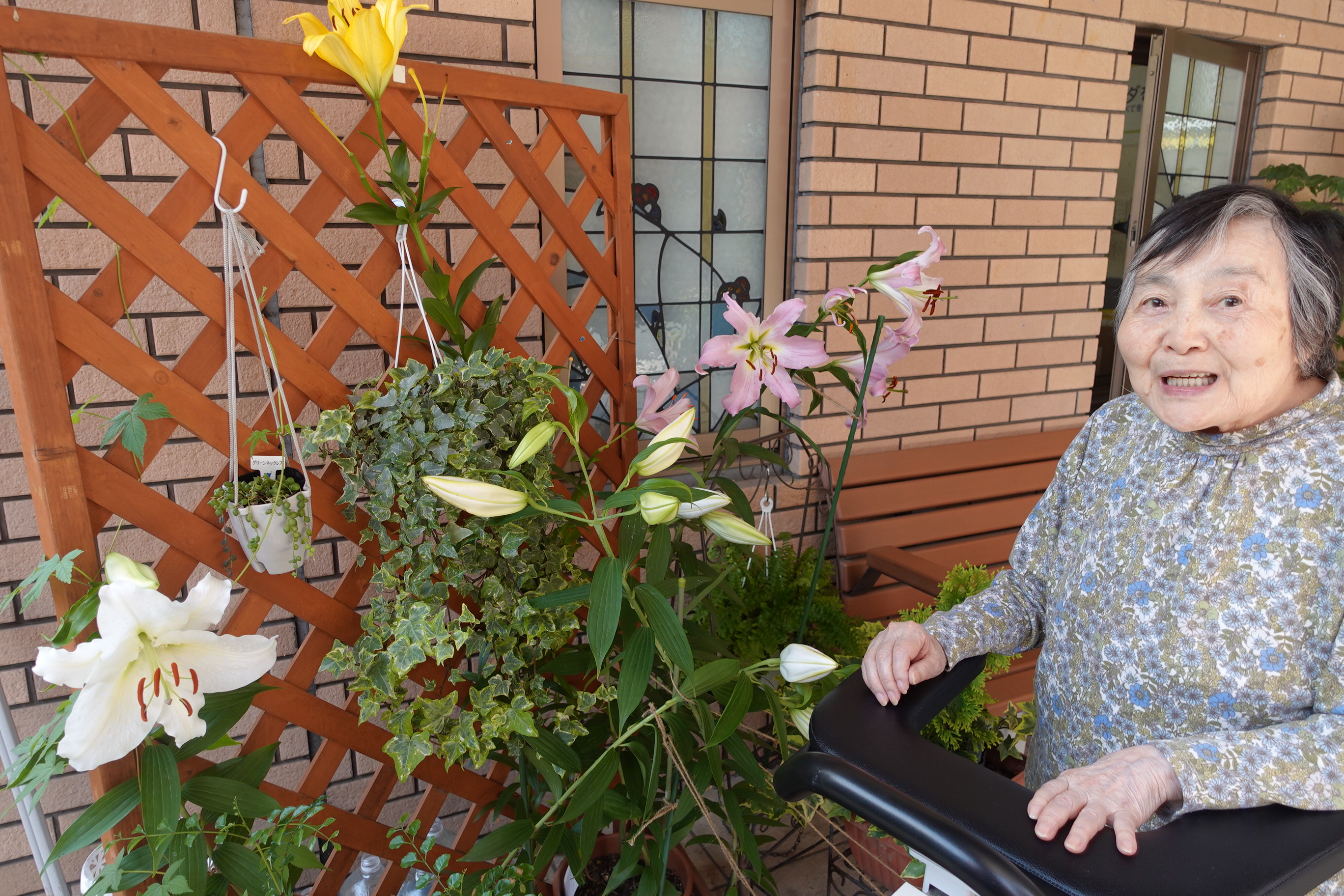 花咲くはぴね玄関、現在はユリの花が満開を迎えております♪