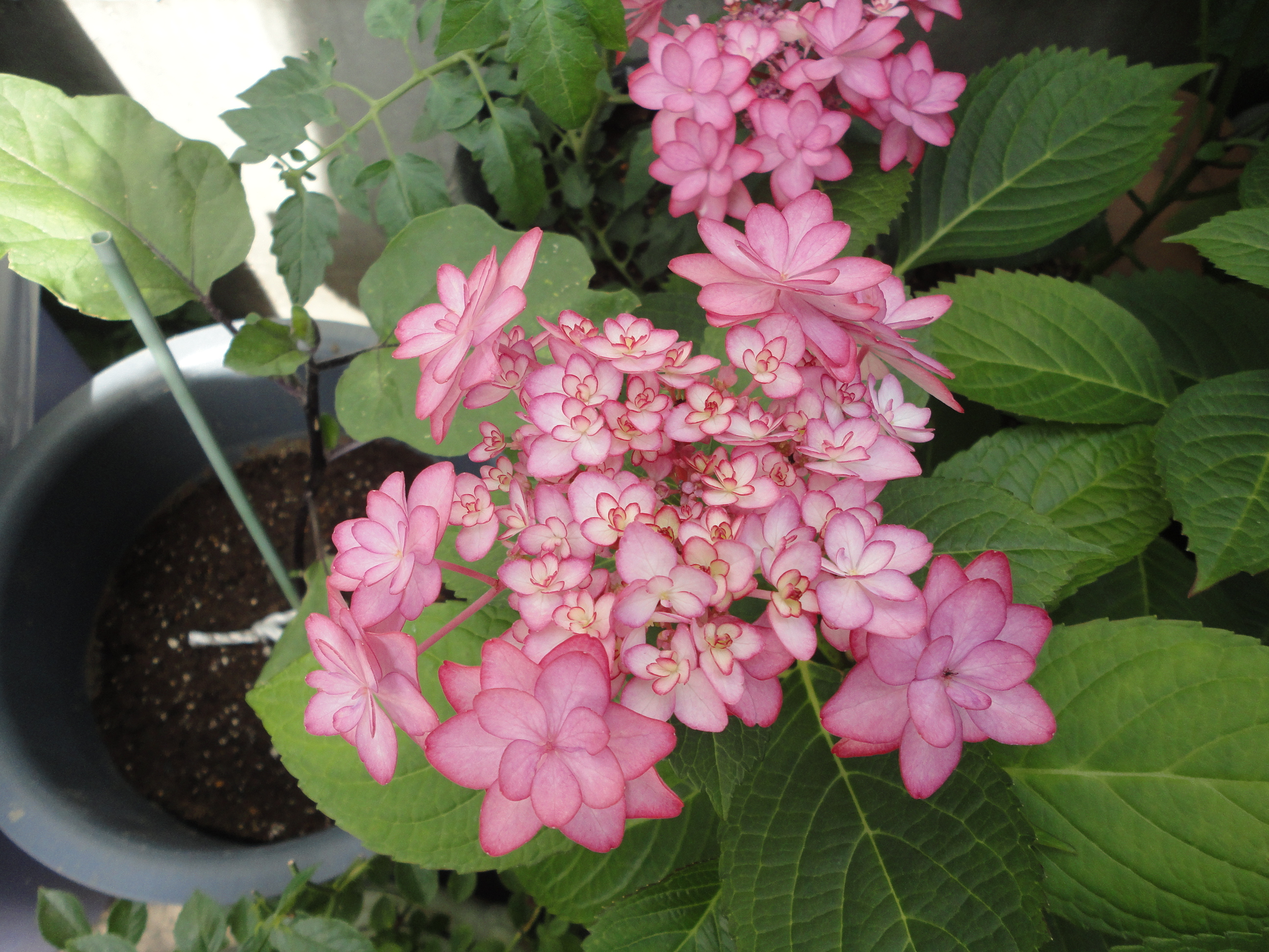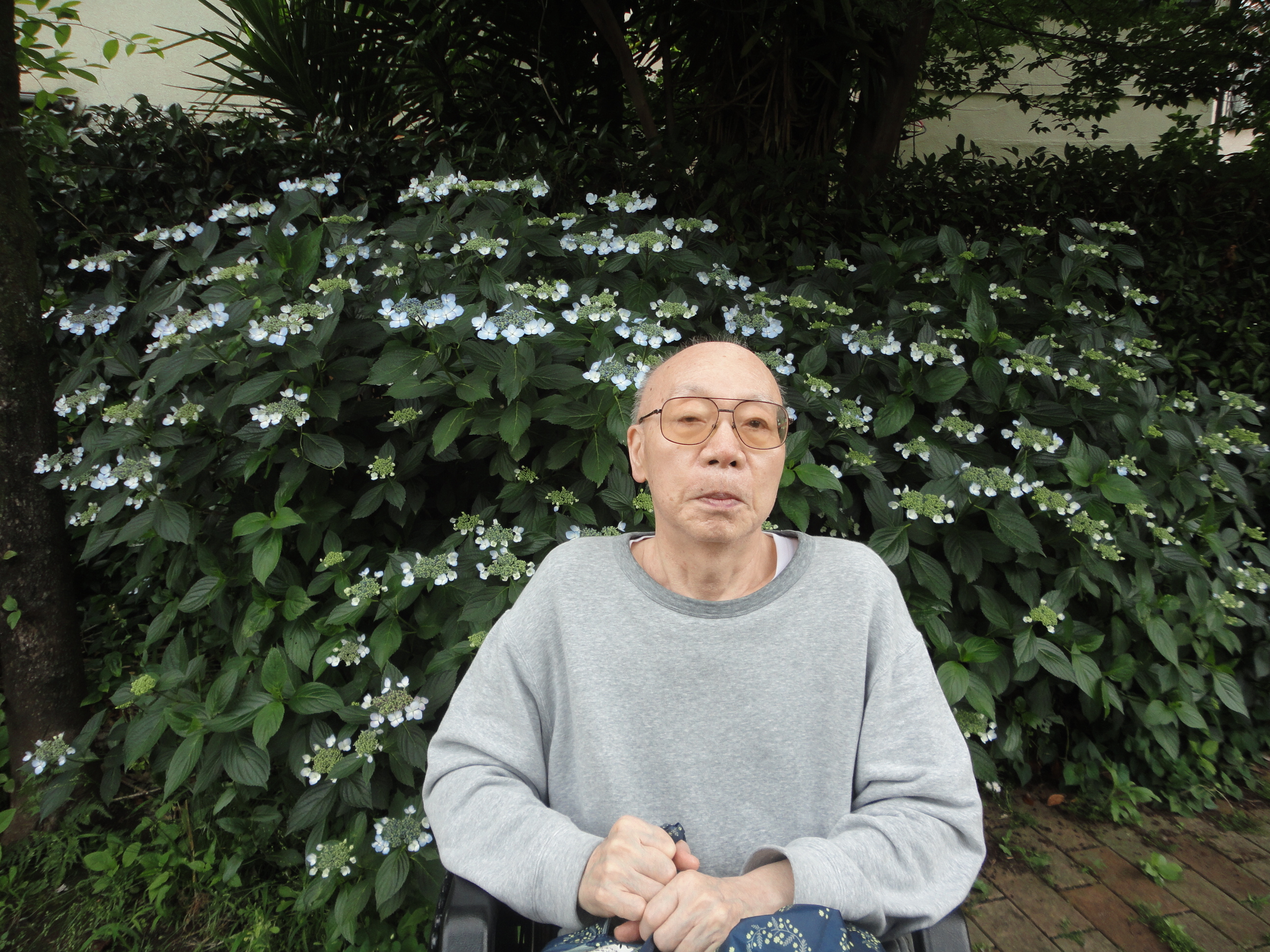 せっかくなので満開のアジサイの花の前で