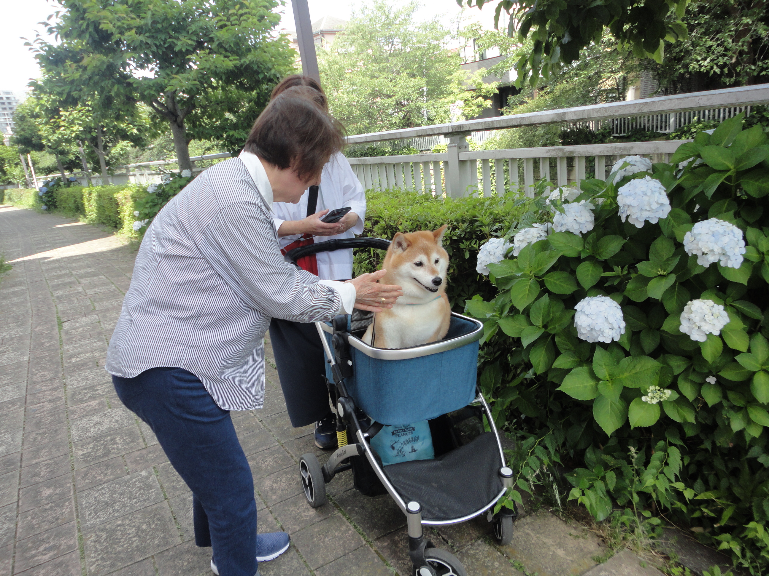 ワンちゃんを見かけると満面の笑みで可愛がられておりました♪