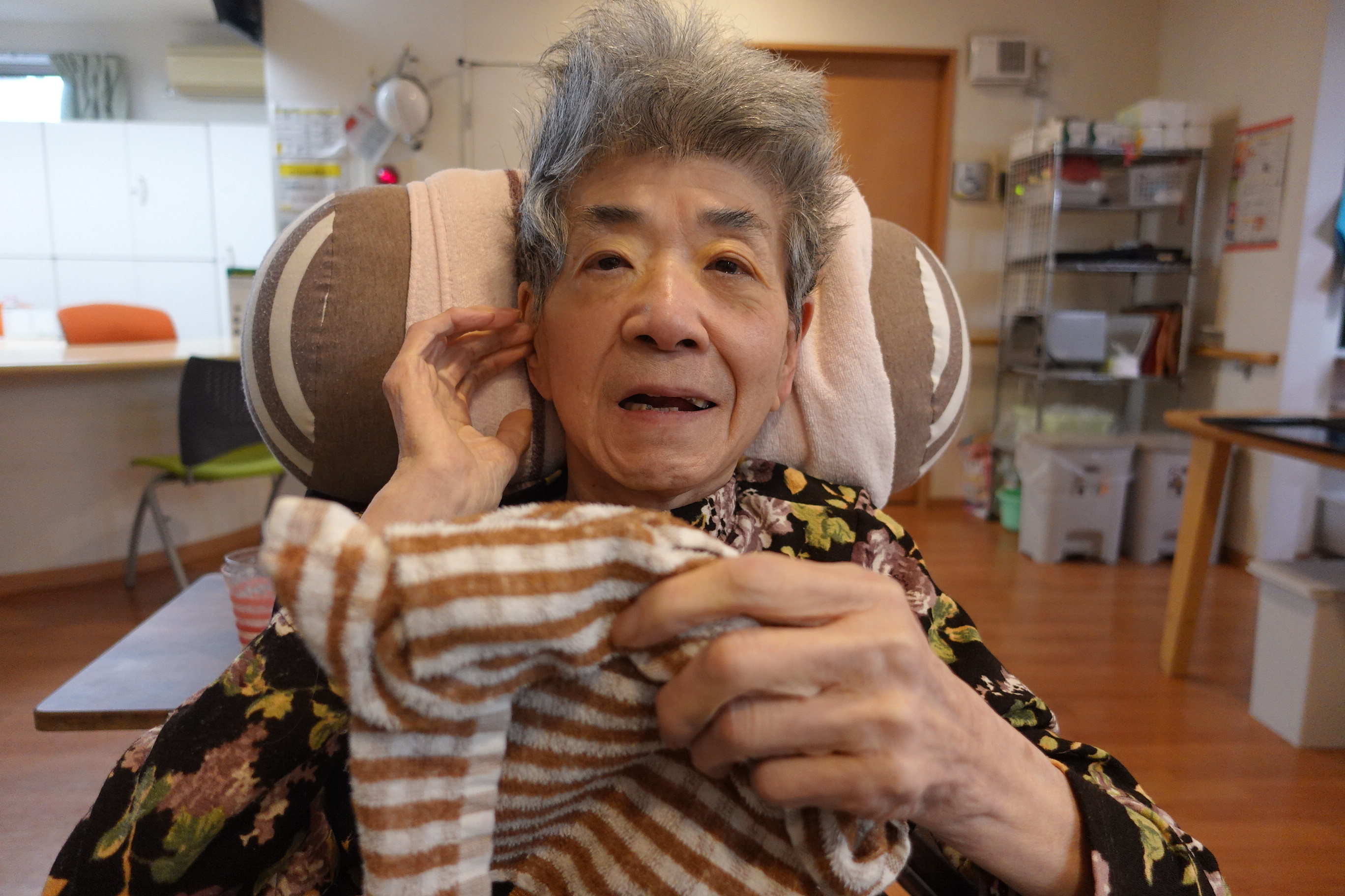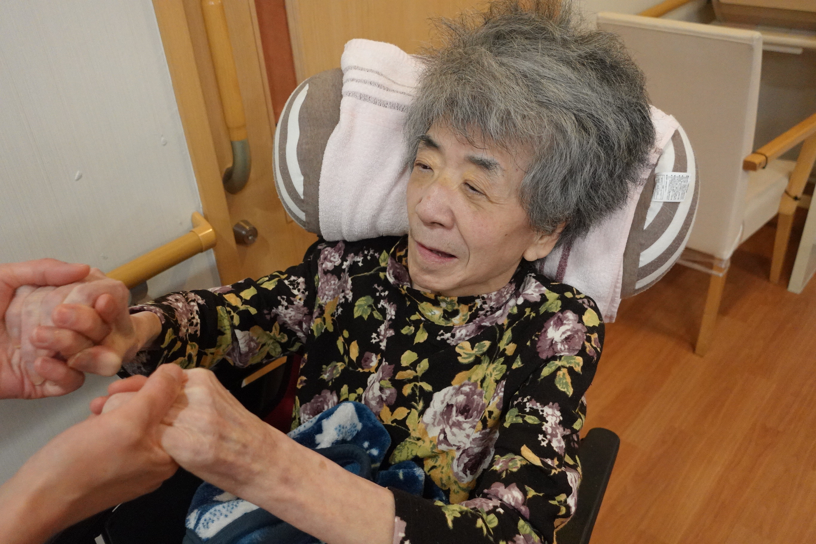 スタッフの手をぎゅっと握られて、とても嬉しそうな笑顔を1枚♪