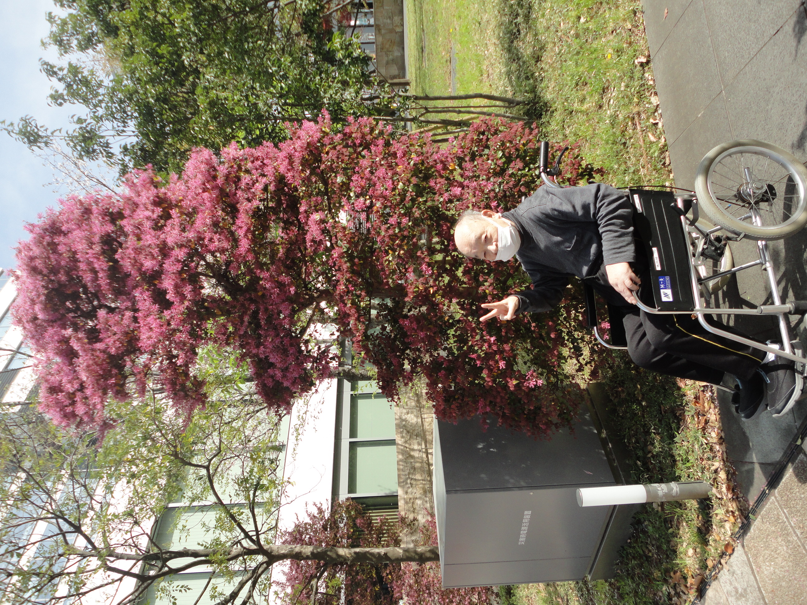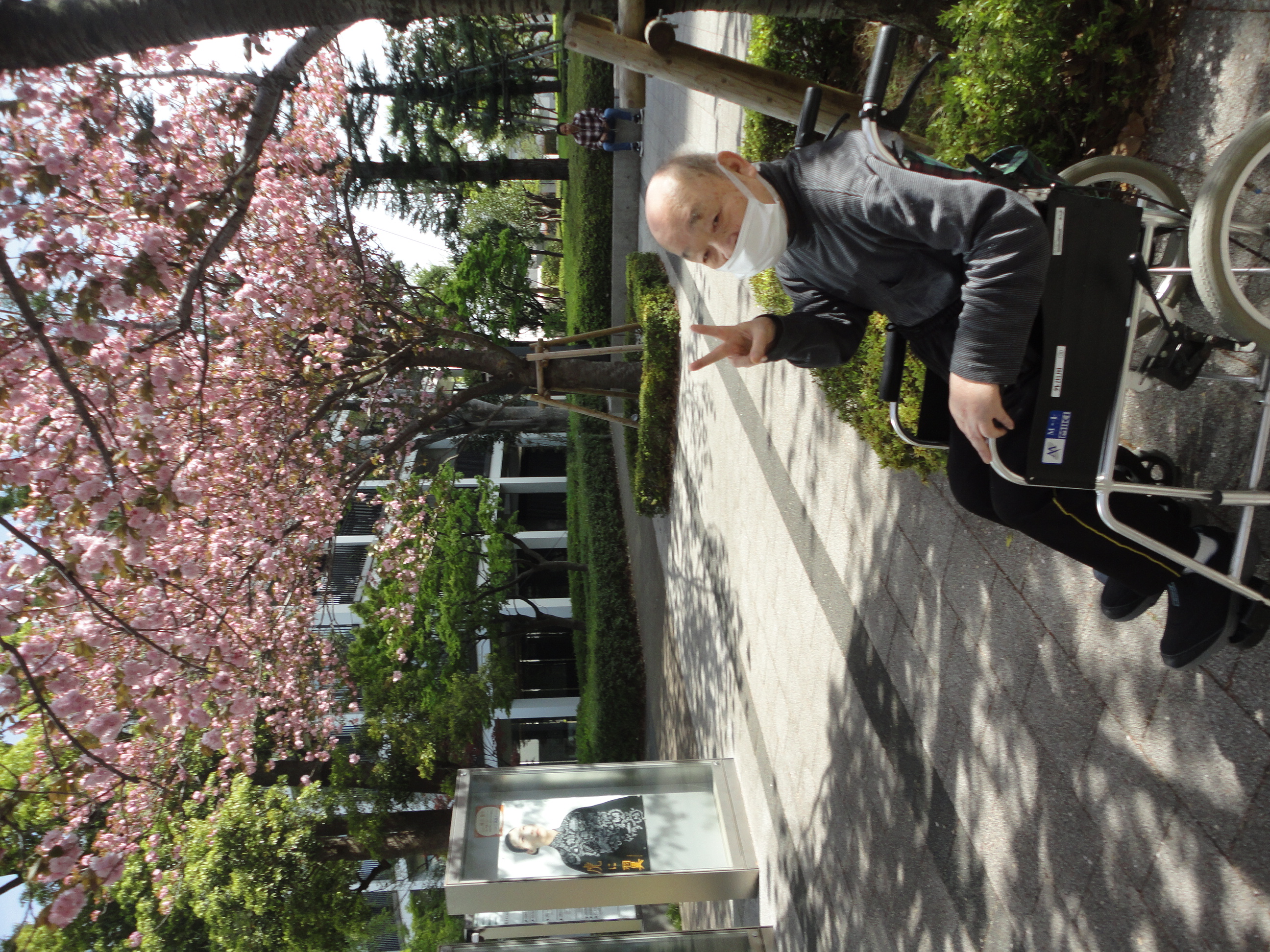 遅咲きの種類の桜はまだまだ咲いているものもあり、木の下で記念撮影🌸
