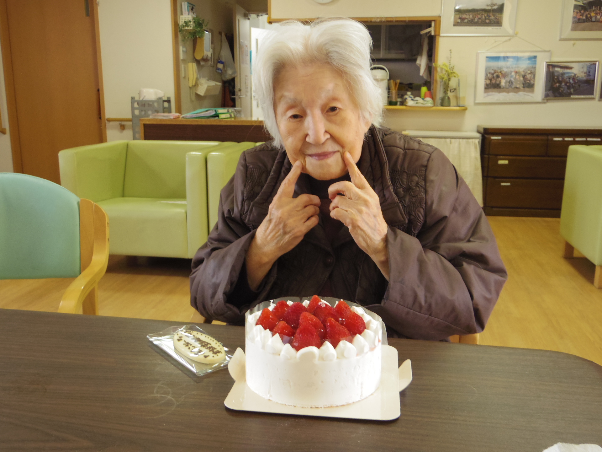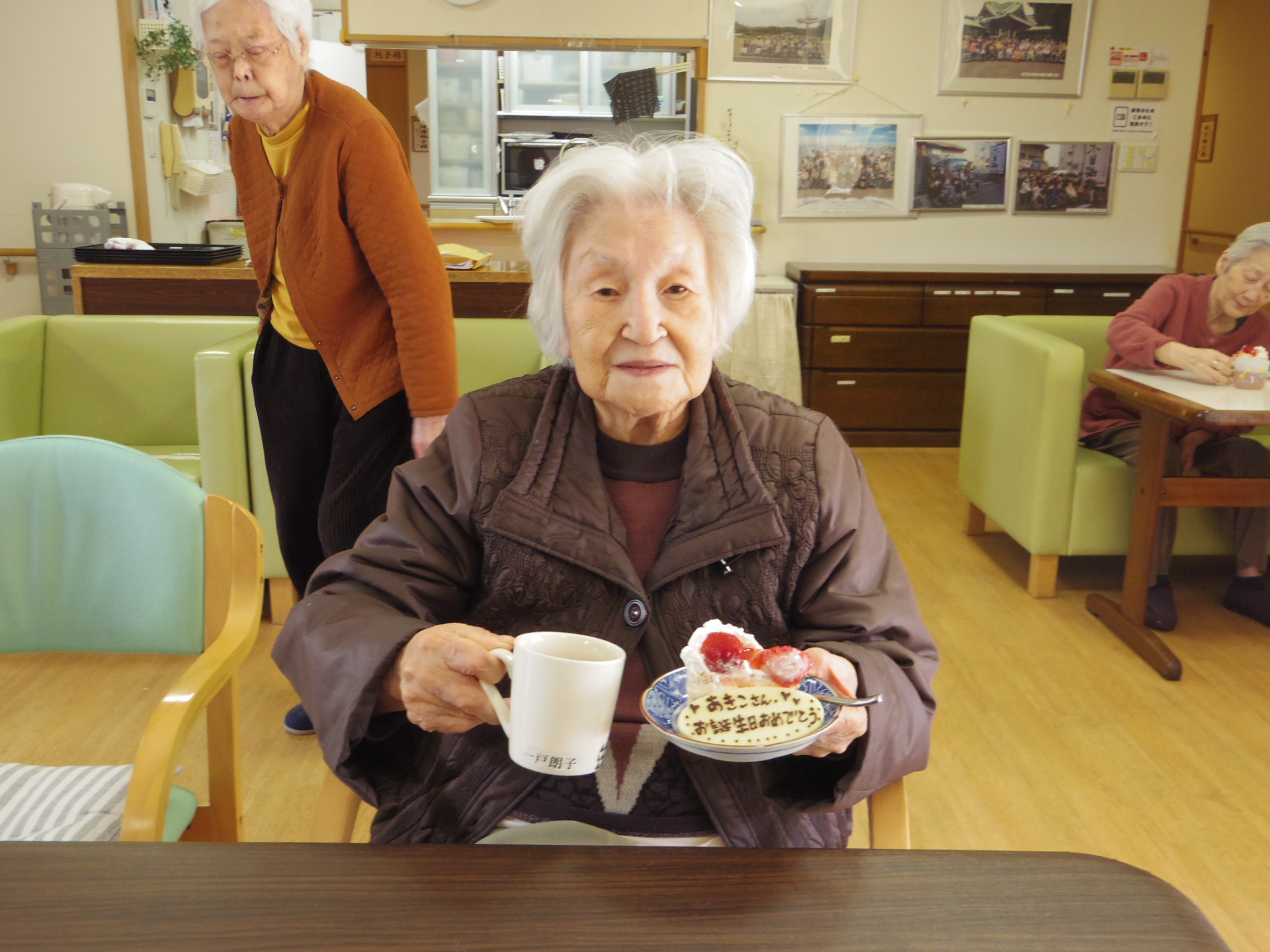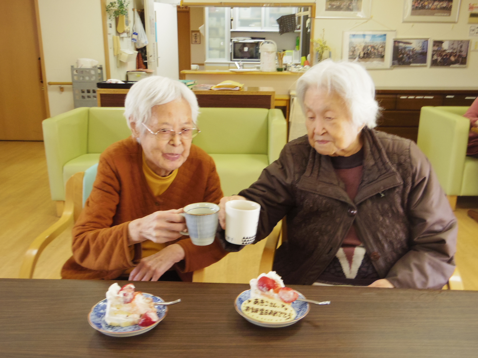 バースデーケーキと一緒に、特に仲良しのおとなりの方と乾杯!