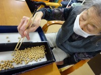 皆さん、鬼に向かって豆(ボール)を投げつけました!