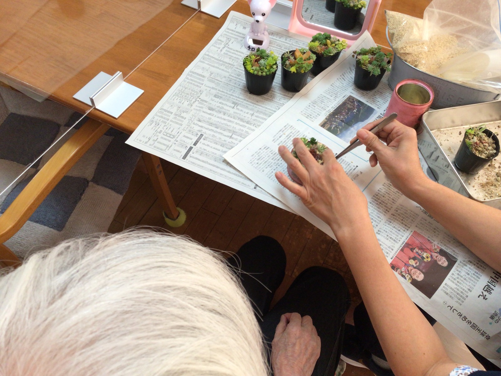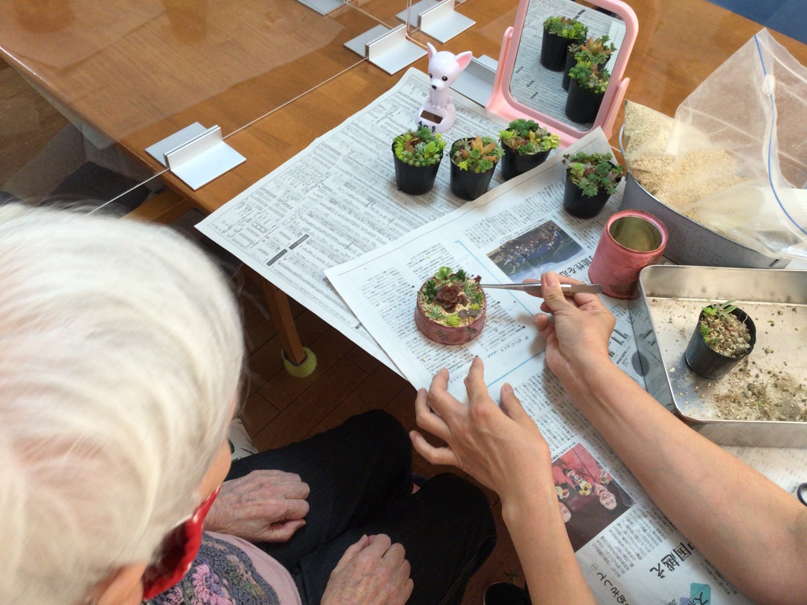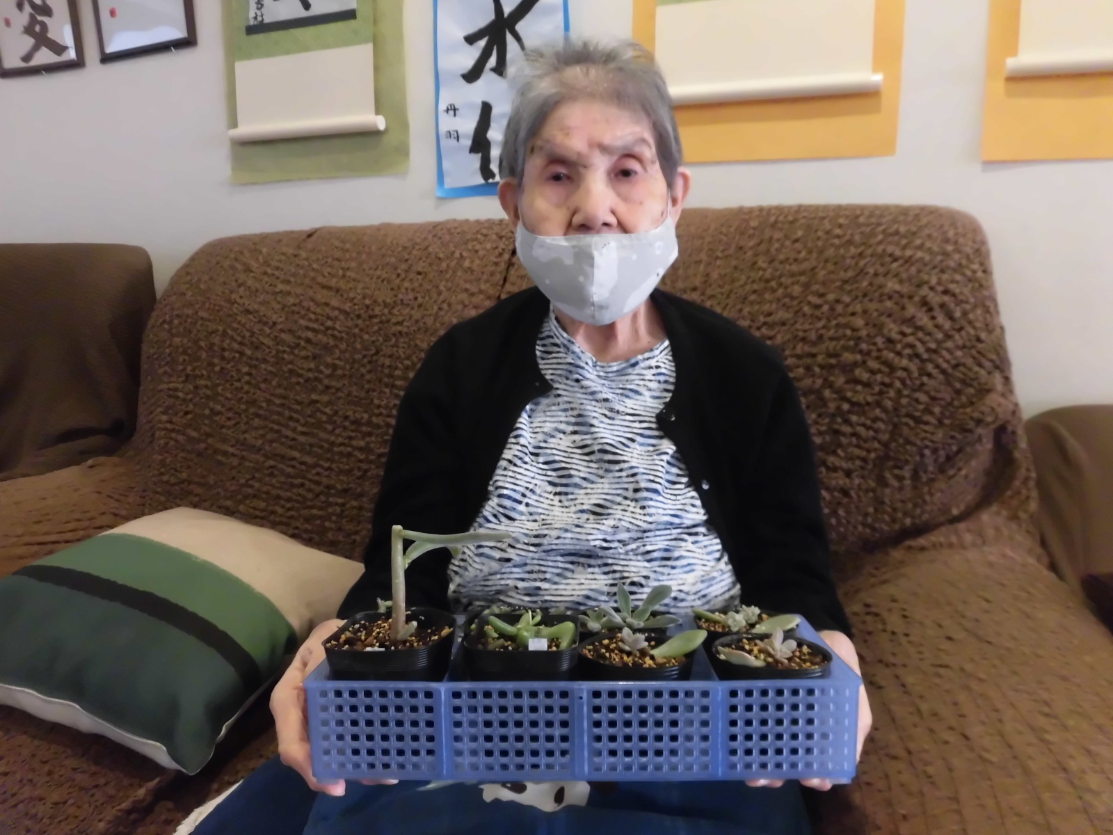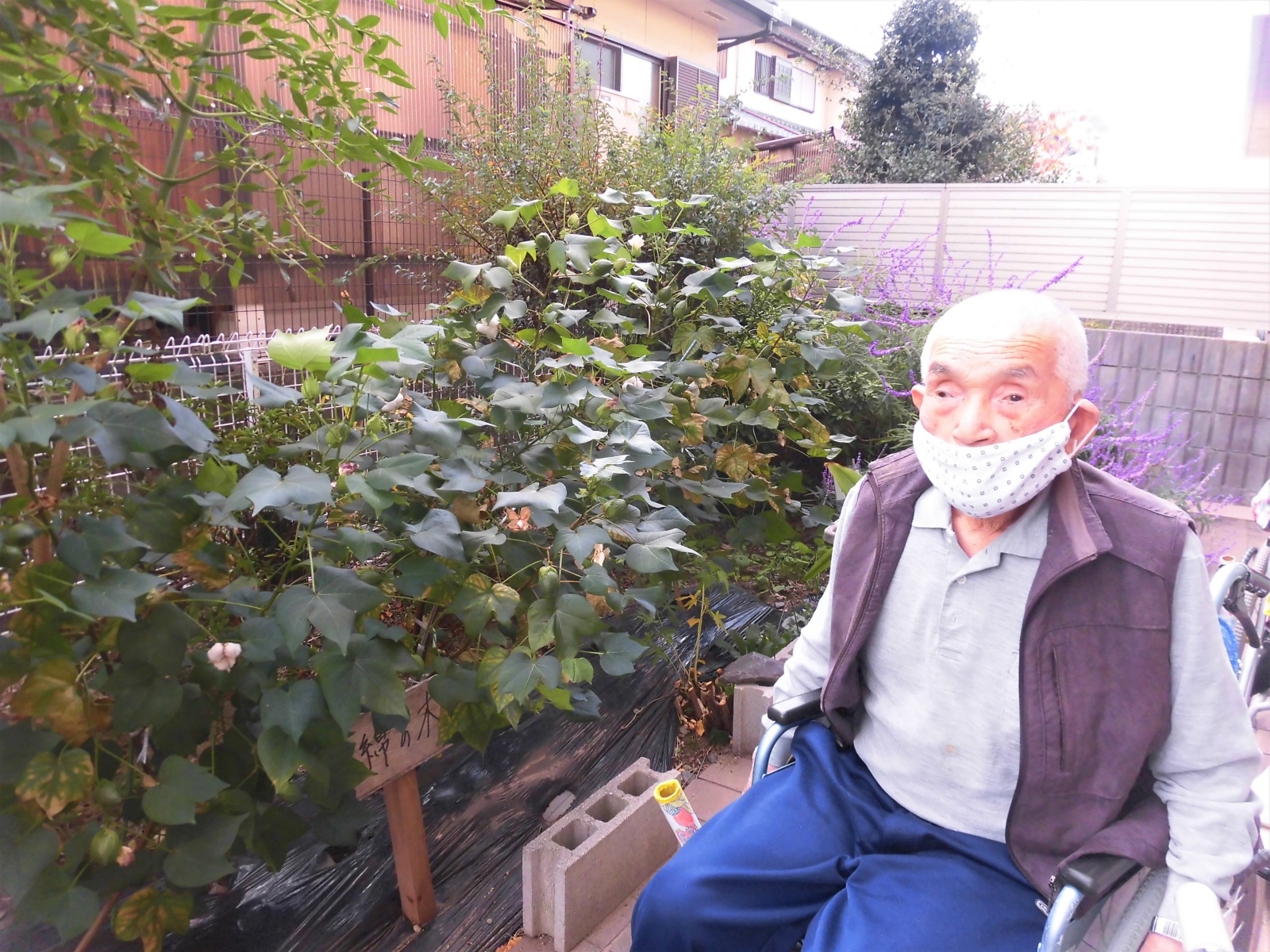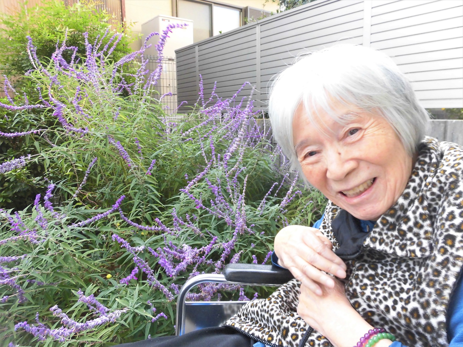 せっかくなので、ご入居者様を1階のお庭にお連れしました。