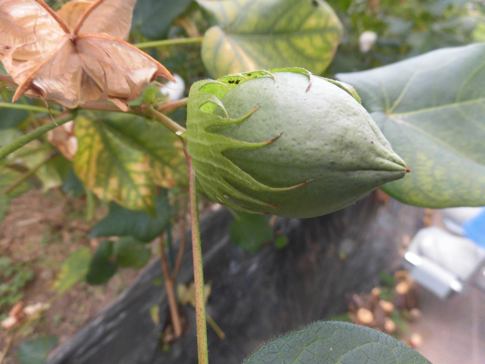 お庭に「綿の木」があり、蕾の中から「やわらかい綿」が、