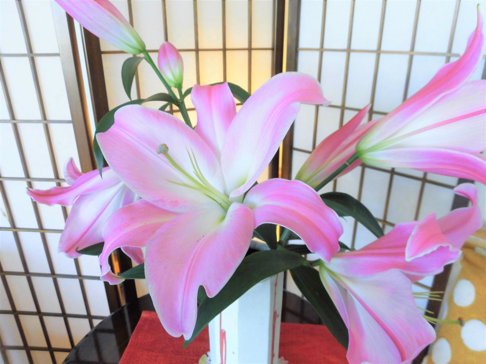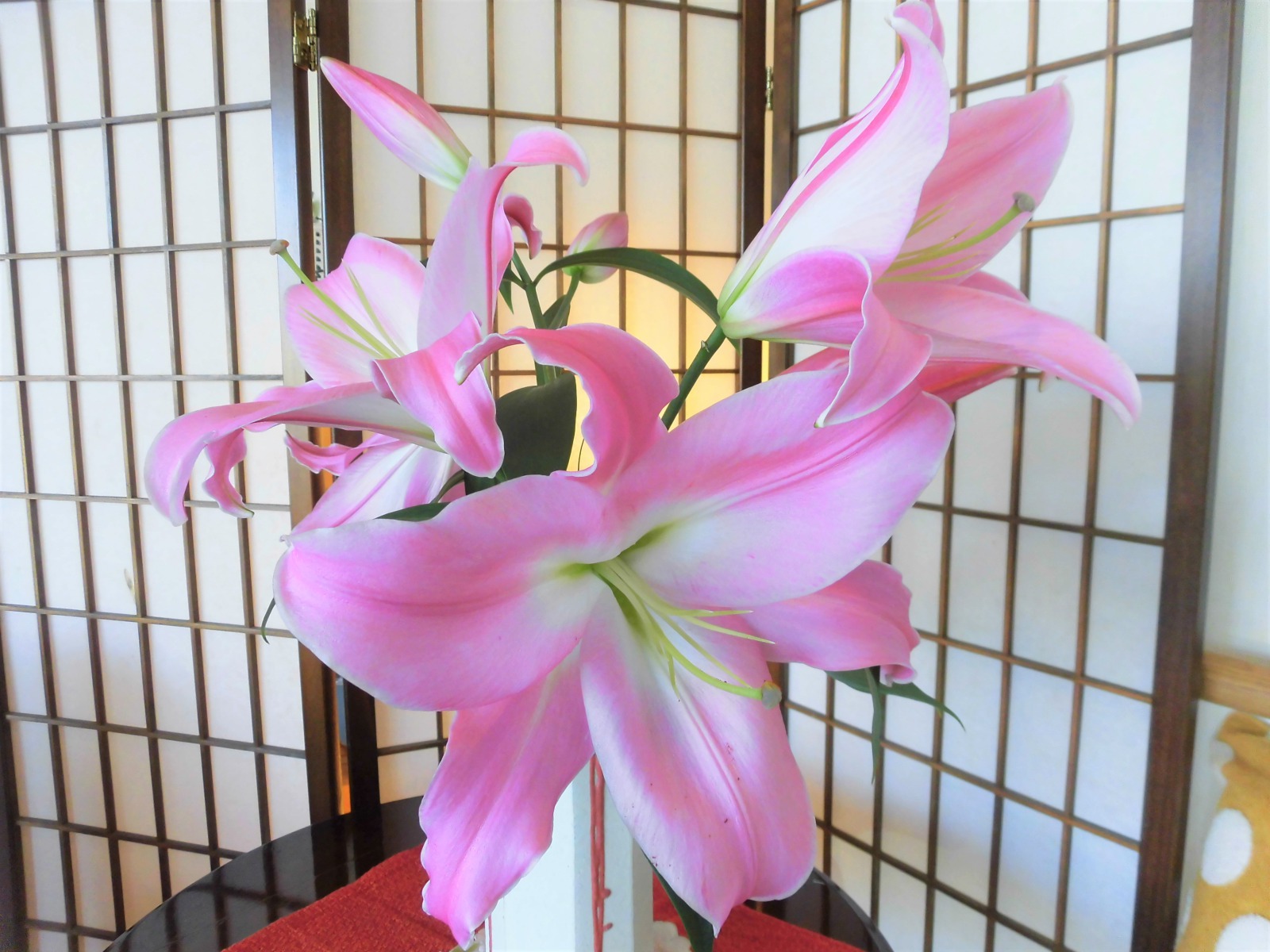 エントランスの大きなユリの蕾が開きました🌺