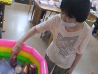 皆さん、プールに手を入れるのも気持ち良さそうに