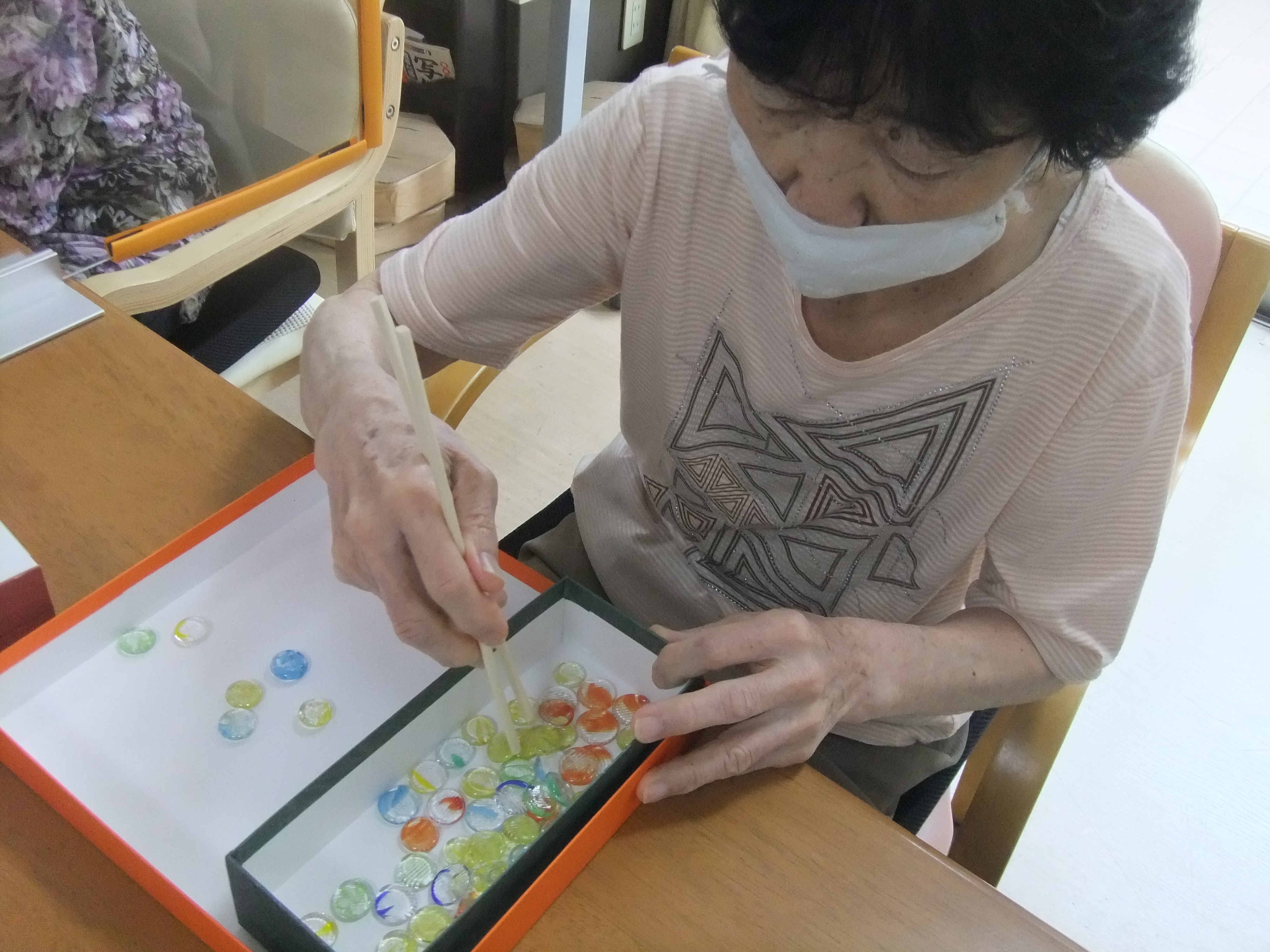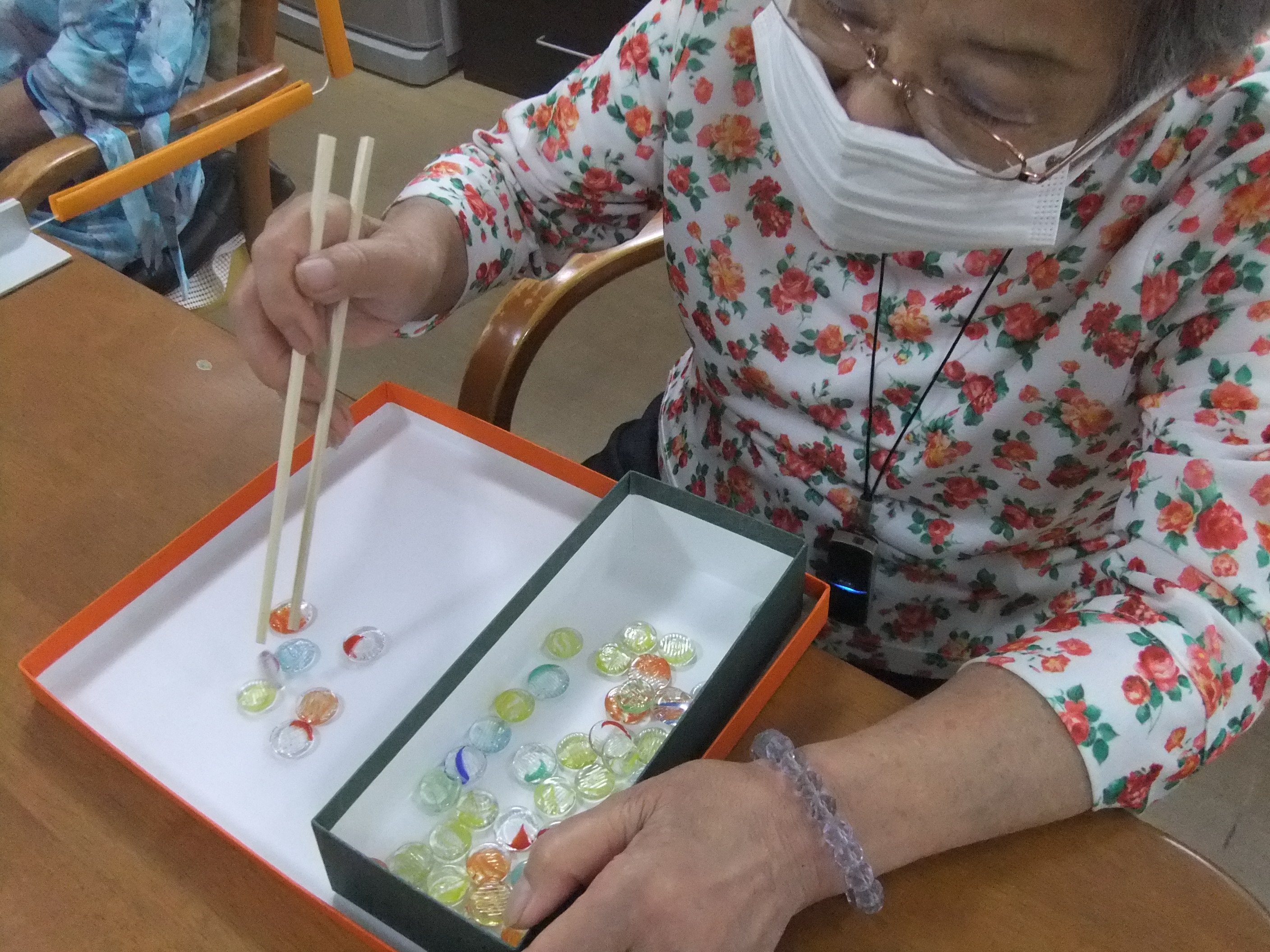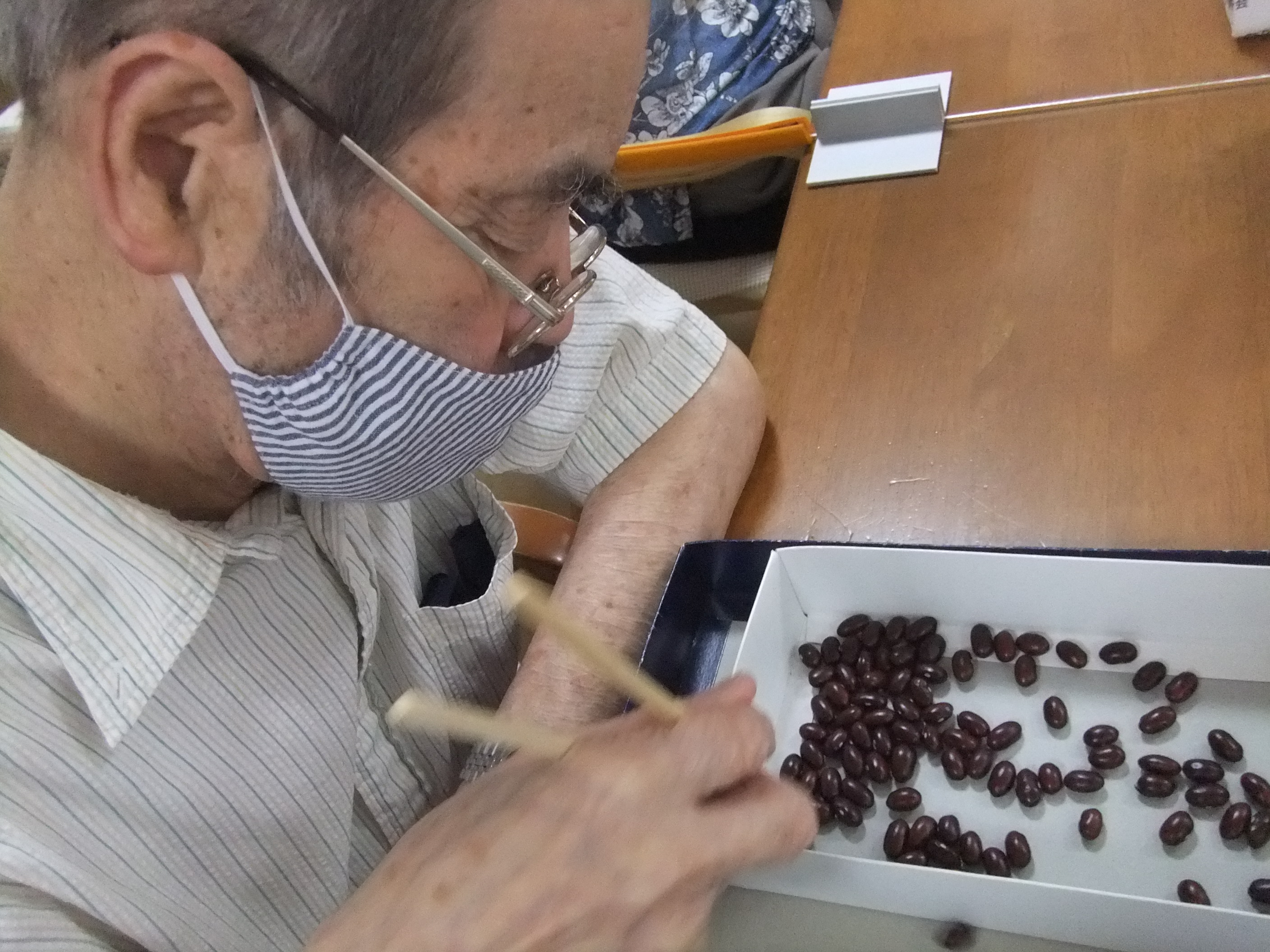 箸を使って時間内に何粒運べるか?