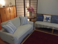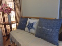 エントランスのソファクッションを夏用に