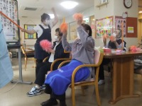 ポンポンを持ったり、足踏みをしながら歌いたいのですが・・・。