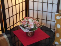 気持ちよく迎えられればとエントランスにお花を置いています。