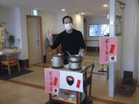 厨房さんと一緒に出来立てで温かいおしるこを各フロアへまわって