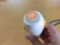 壁に掛けられるハンド子機と手元には握りボタンがあります。
