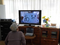 わかりやすいイラストを使っての体操にご利用者も熱心に口を