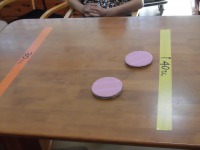 勢いよく「えい!」と滑らせるとテーブルから飛び出して