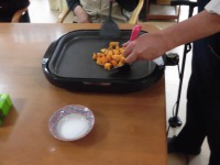 施設長が即席で、柿のソテーを作り、皆さん頬張ってみえました。