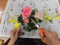 バラをメインに、オンシジューム・かすみ草・スターチスを活けていきます。