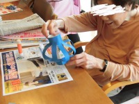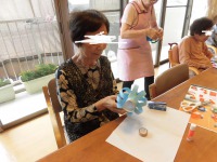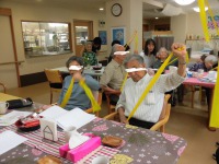 本日は、入居者様と一緒にちょうちんを折り紙で