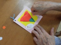 集中して、色紙を貼ってみえました。