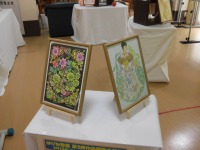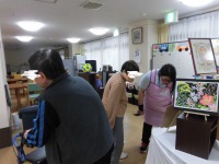 本日は、利用者様が作成された絵画や折り紙、習字、