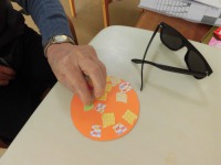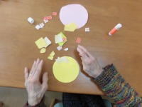 折り紙を細かくちぎって台紙に貼っていきます。