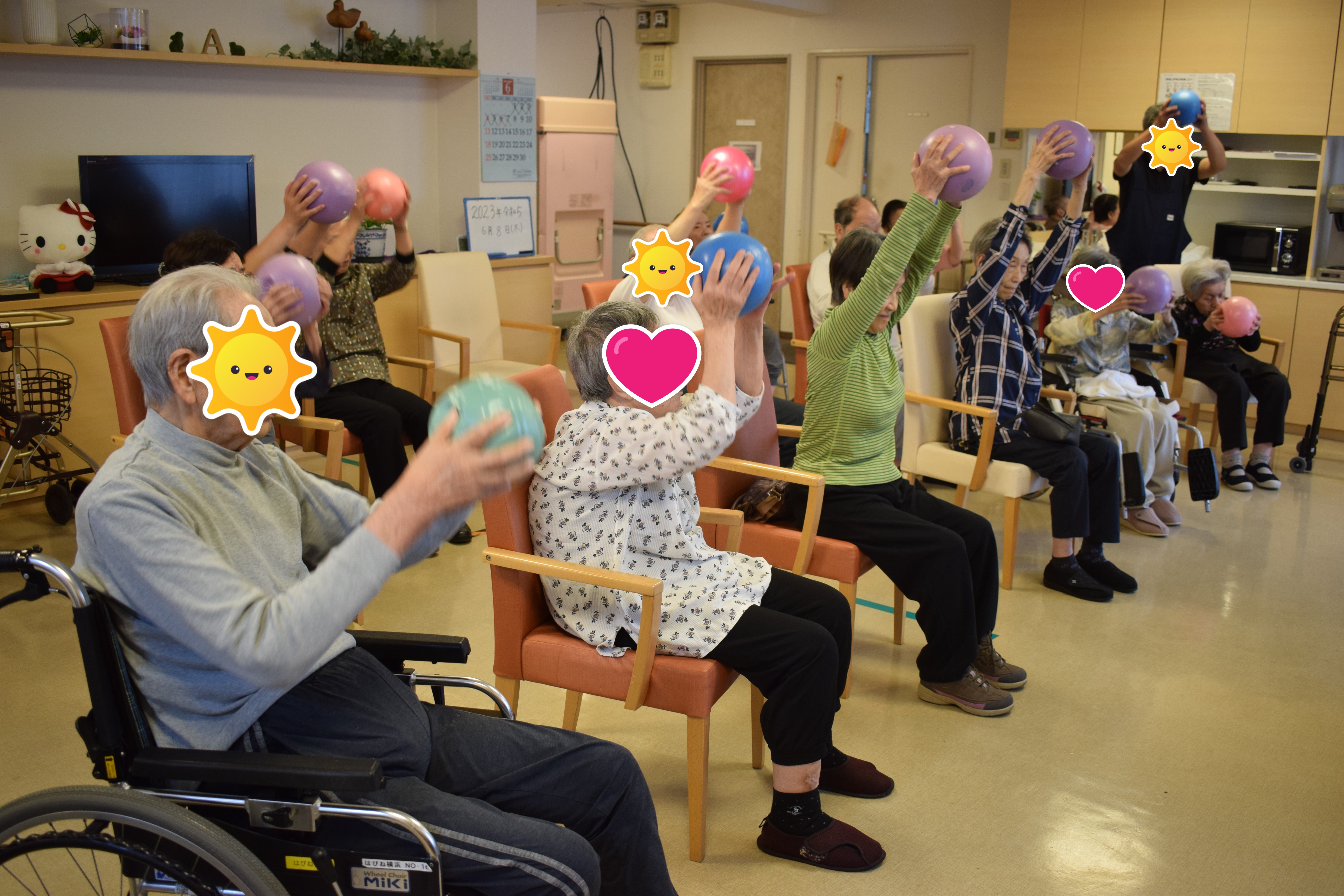 椅子に座って懐かしの昭和歌謡に合わせて元気よく体を動かされていました。