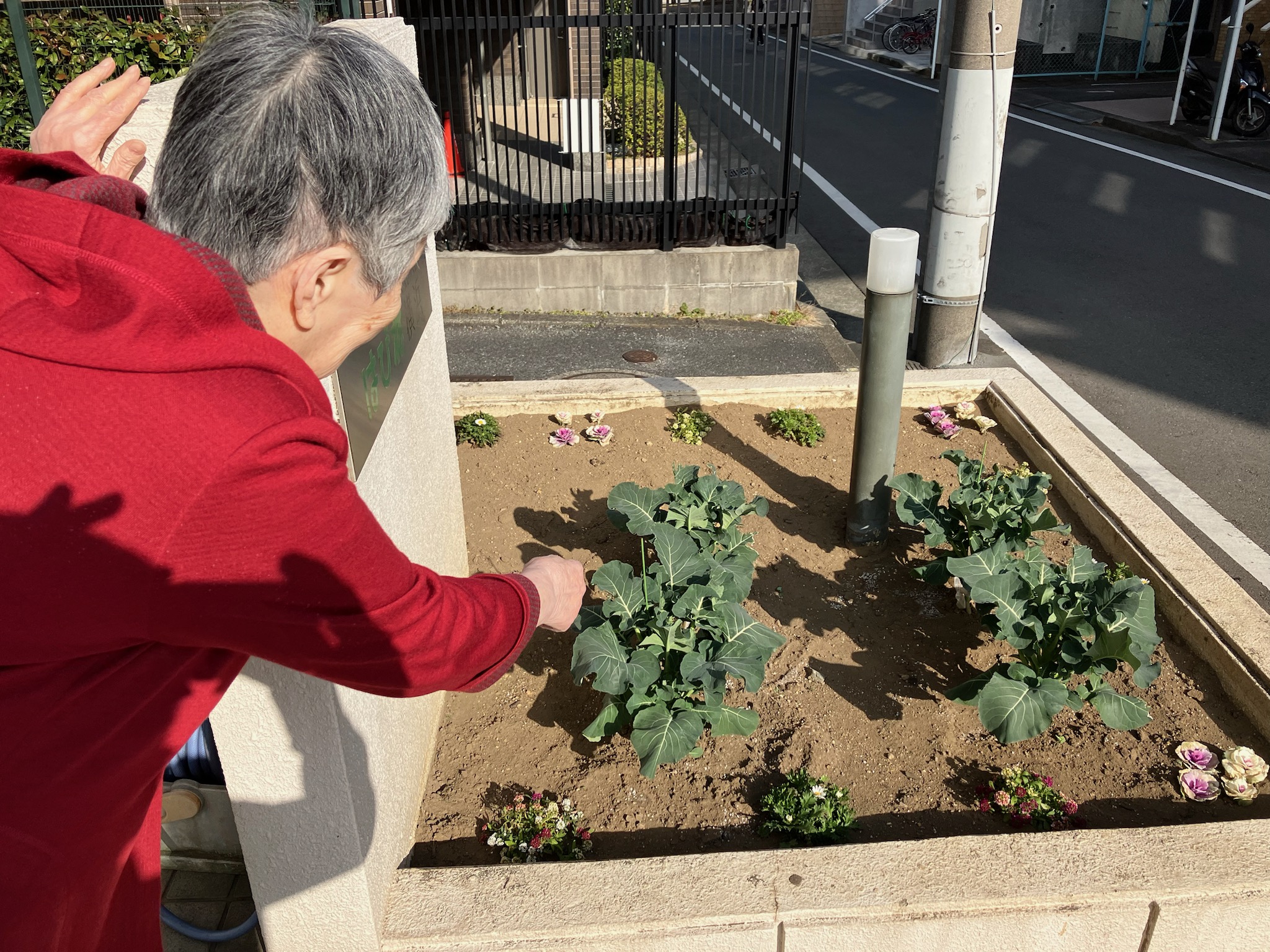 はぴねの花壇に植えてある植物を指さして『色々植えてあるね』と興味津々の様子でした😄