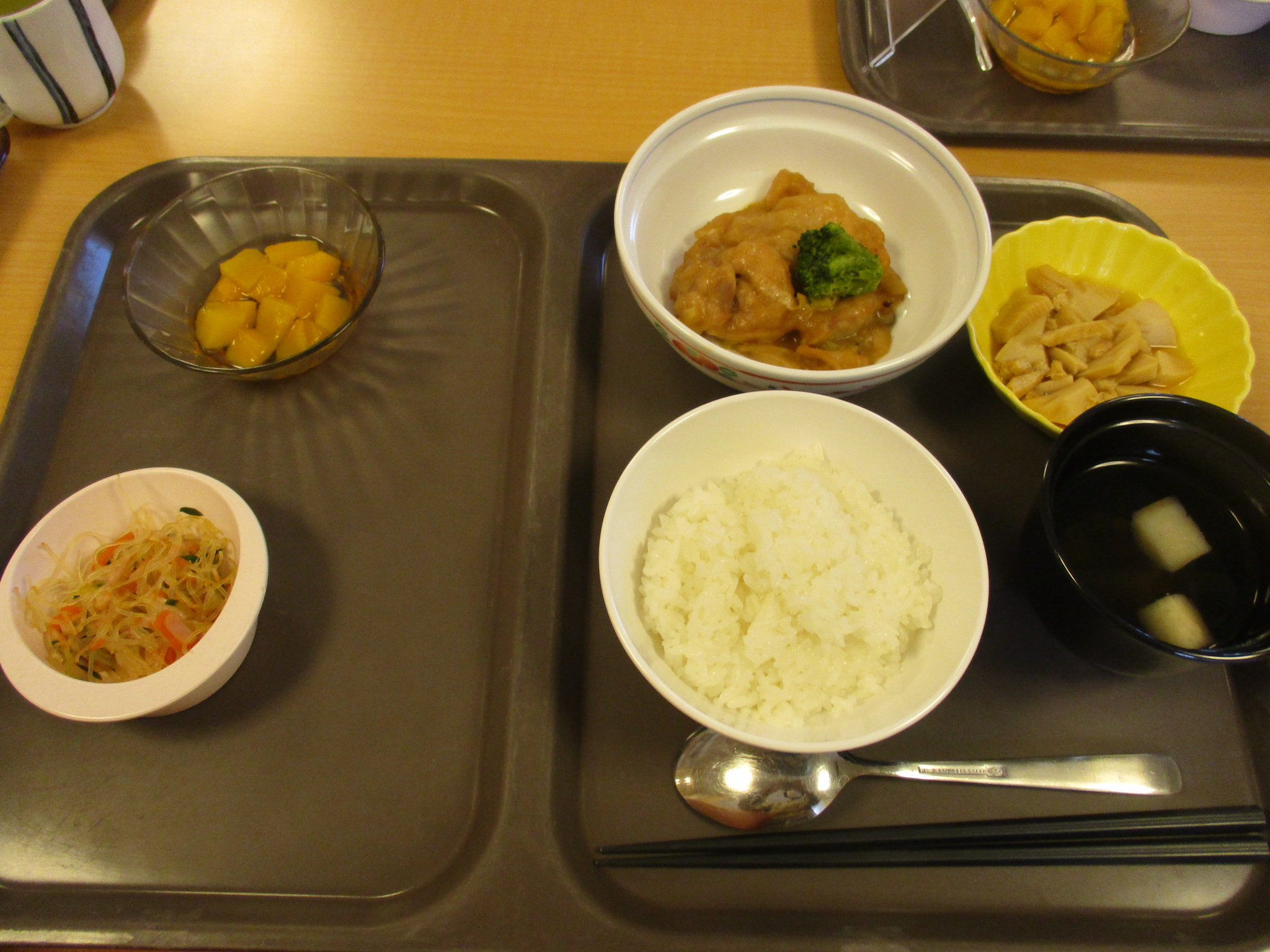 本日の昼食は清汁、ガリバタ鶏、(ガーリック/バター焼き)