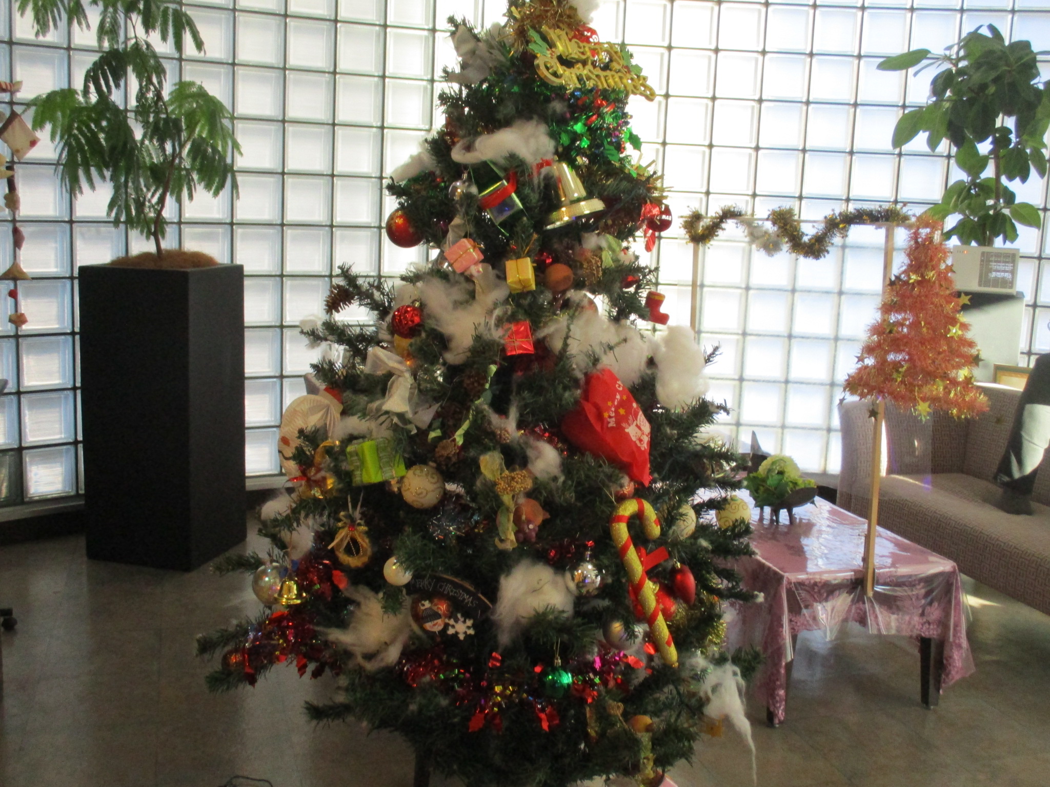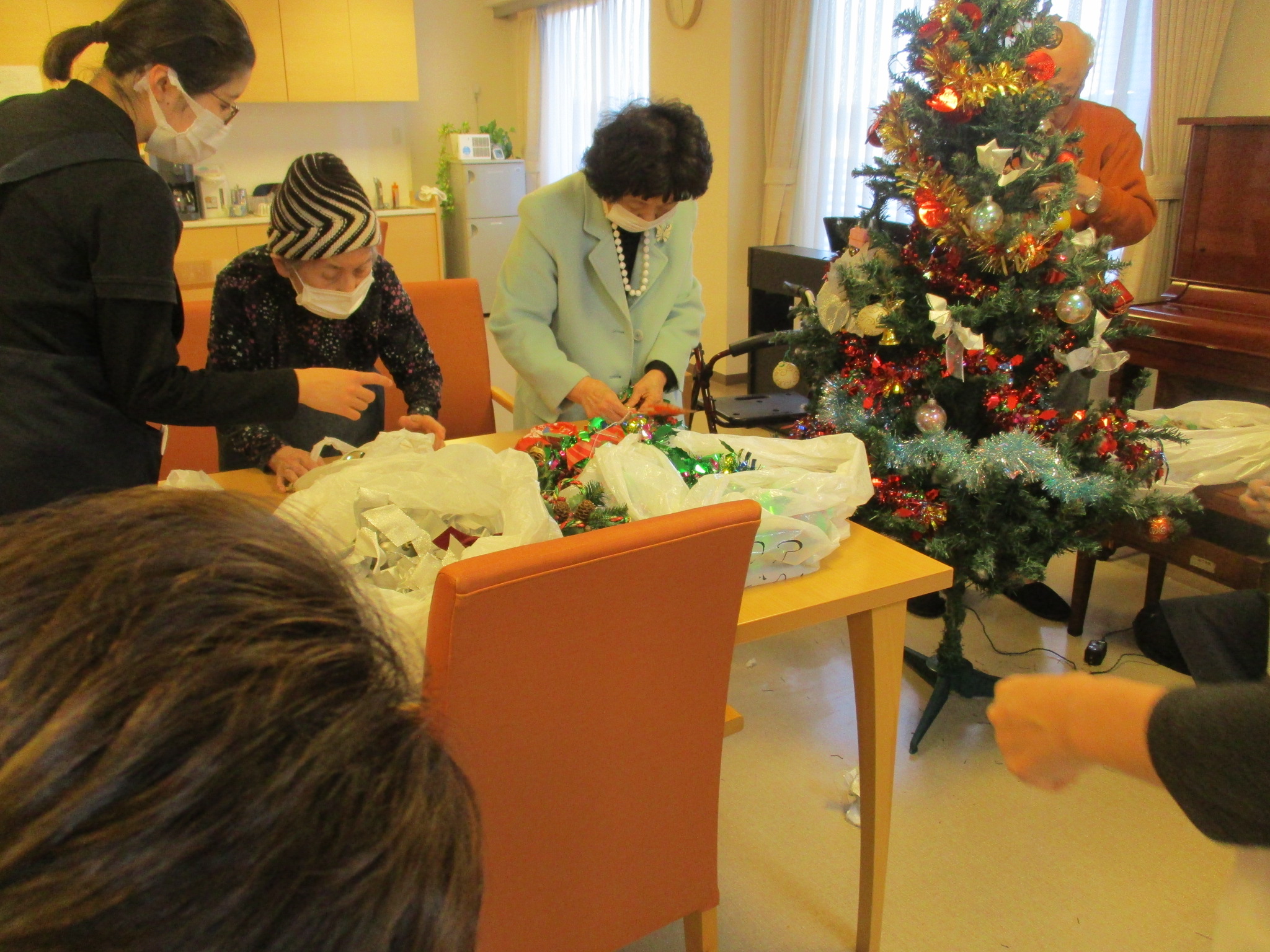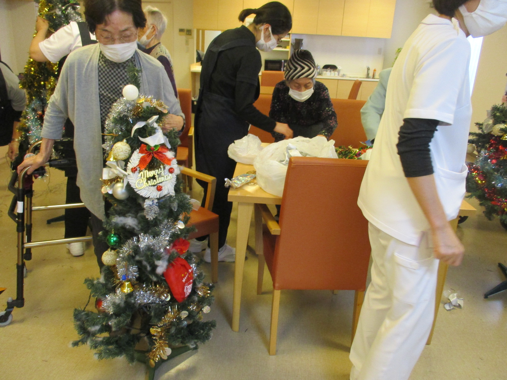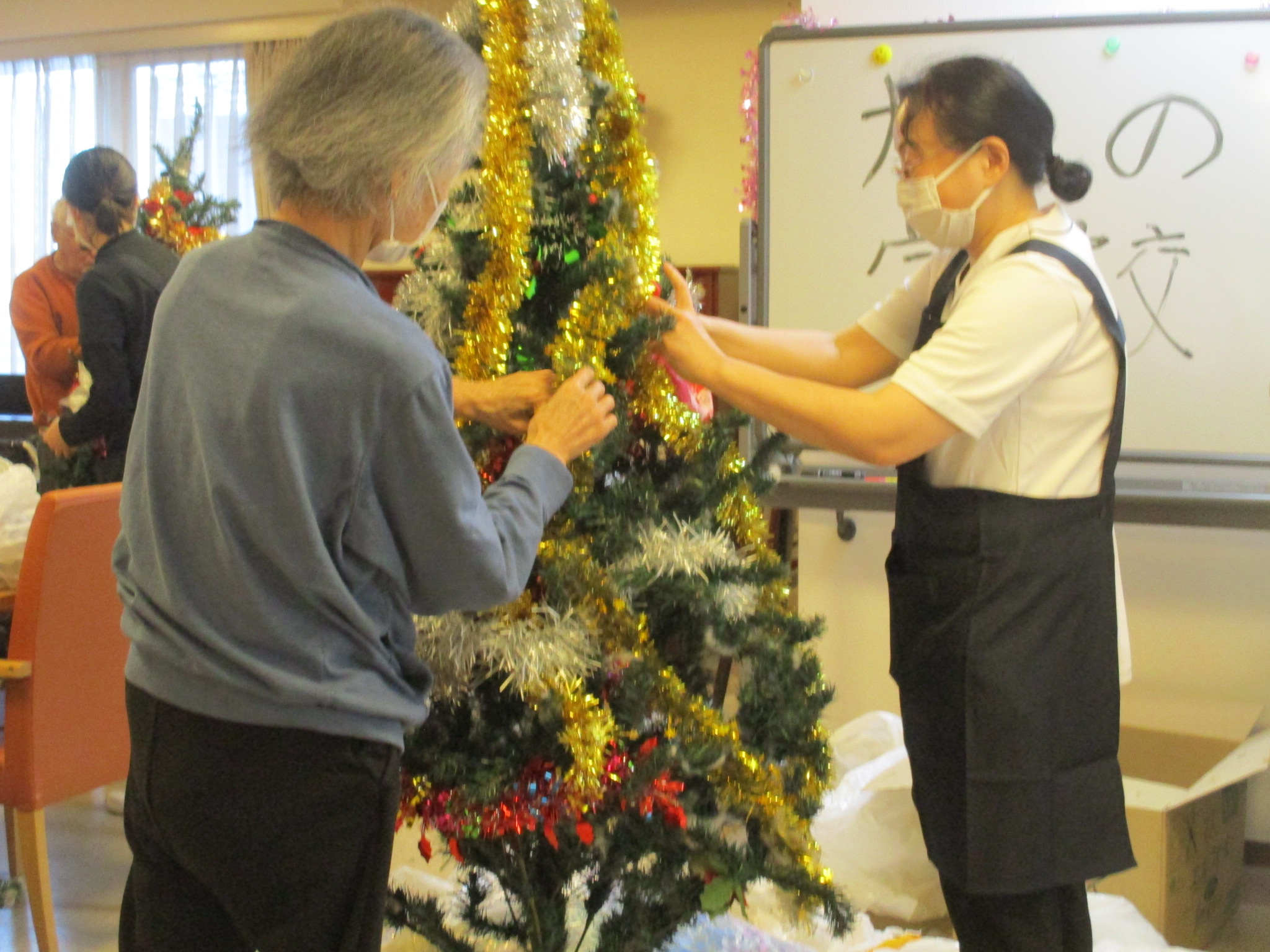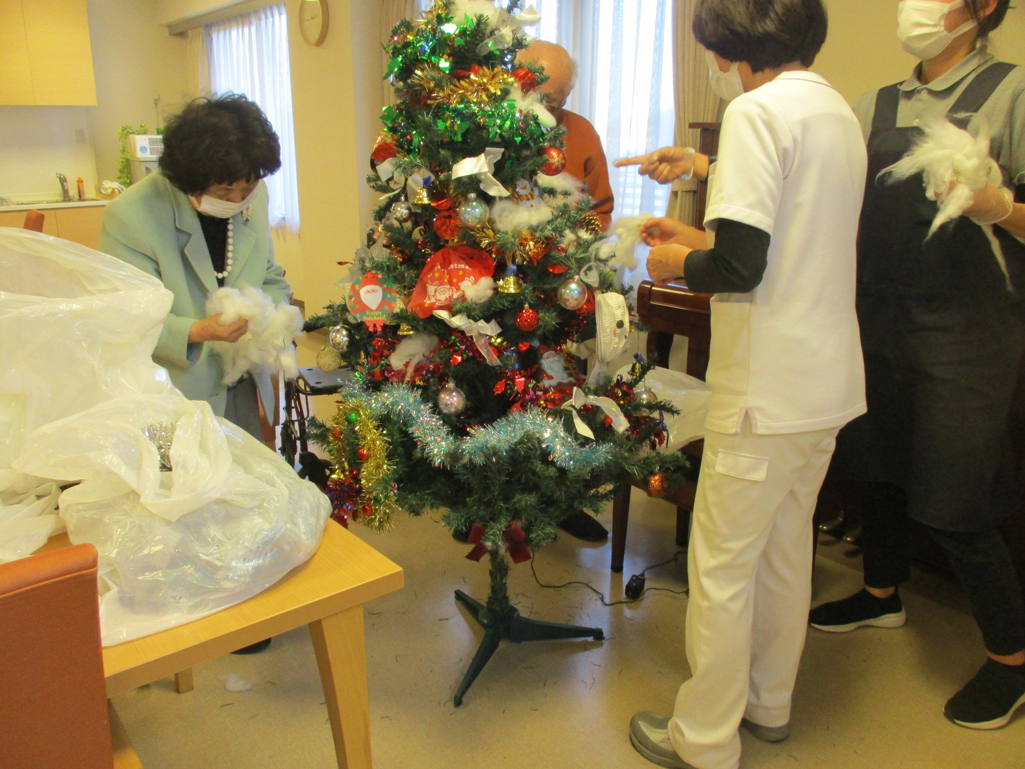入居者の皆様とスタッフにてクリスマスツリーを各階と玄関に飾りました。