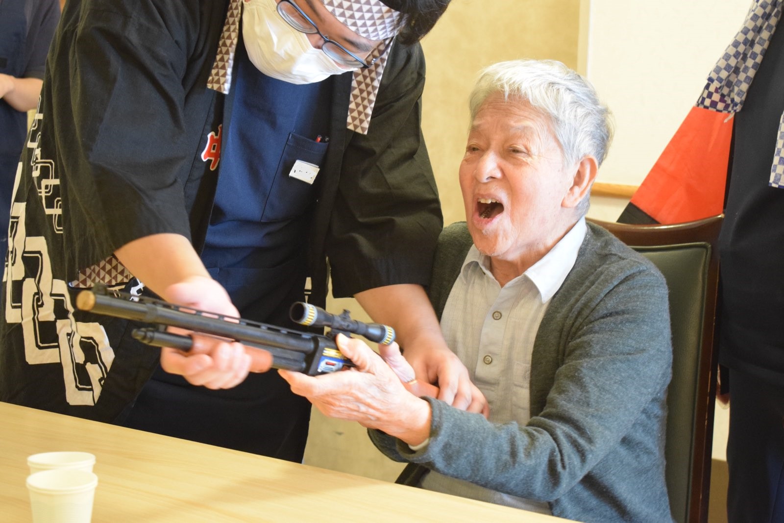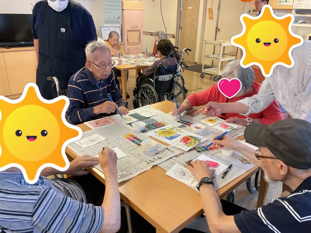 トップページ > 施設を探す > はぴね横浜 関連 介護付有料老人ホーム はぴね横浜 施設へのお電話は 045-989-0525 9時00分~17時30分 (365日受付) 入居に関するお問い合わせ 0120-1165-14 施設の特徴 施設概要 料金プラン 施設のアルバム «前へ1234次へ » 2025年10月18日 運動会🏃♂️ 本日は『運動会』がありました♪ 各フロアごとに分かれてチームを組み(3F白組・1&2F赤組)、様々な種目で競い合いました😤 玉入れ・パン喰い競争・大玉転がしを行い、最終的に『白組』が勝利を収めました🎉 パン喰い競争のアンパンや運動会の参加証としてお配りしたお菓子を皆様おいしそうに召し上がられていました😋 関連 2025年09月15日 敬老の日 本日は『敬老の日』ということで 昼食にはお赤飯と天ぷらが出ました😋 豪華なメニューに皆様も召し上がる前に『おぉ~』と眺めていました😋 おやつには職員特製の紅白汁粉と練りきりが出ました😋 はぴねには甘いものが好きな方が多く皆様喜んで召し上がられていました😋 そして今年祝い年の方と最年長・最長在籍の方に祝い状をお渡ししました✨ 関連 2025年09月06日 絵手紙教室 本日は『絵手紙教室』がありました♪ 先生に教わりながら色を塗り、完成した絵に一言二言文字を添えて完成。 皆様思い思いの一言を書かれていました😄 関連 2025年09月02日 おめでとうございます!!! 本日はT様の誕生日でした🎶 フロアで過ごされていたT様に皆でハッピーバースデーを歌いながらバースデープレートを お渡ししました♪ 受け取ったT様も嬉しそうに微笑みながら『ありがとう』と仰られていました😁 素敵な一年をお過ごしください♪ 関連 2025年08月24日 🎐夏祭り🎆 本日は『夏祭り』がありました♪ 祭りには射的・的当て・千本引きといったゲームがあり、 屋台には焼きそば・たこ焼き・やきとり・フランクフルト・かき氷・わたあめと豊富なメニューをご用意し、皆様に楽しんでいただきました😁 中でも射的は人気があり、真剣な表情で的を狙っていました😃 その後は各フロアにて『リズム体操』や『太神楽』の披露などがありました♪ 普段見る機会があまりない太神楽は皆様も『おぉ~』と興味津々に見ていました😁 関連 «前へ1234次へ » 近隣施設のご紹介 メディス足立 介護付有料老人ホーム グリーンライフ蕨 介護付有料老人ホーム シーハーツ川口 介護付有料老人ホーム メディス武蔵浦和 介護付有料老人ホーム