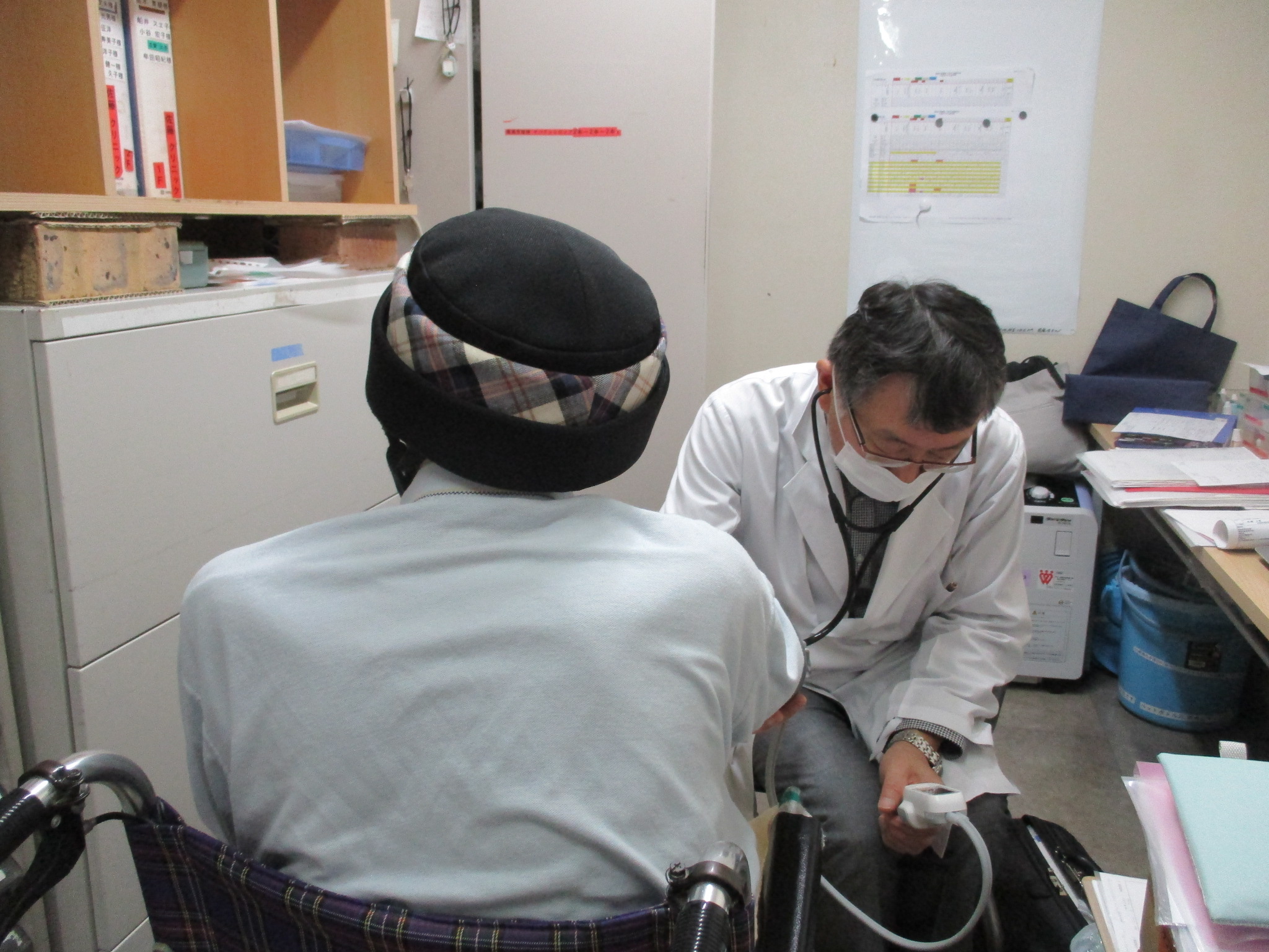 先生に血圧や体温を計測してもらい、聴診器で肺の音を診ていただきます。