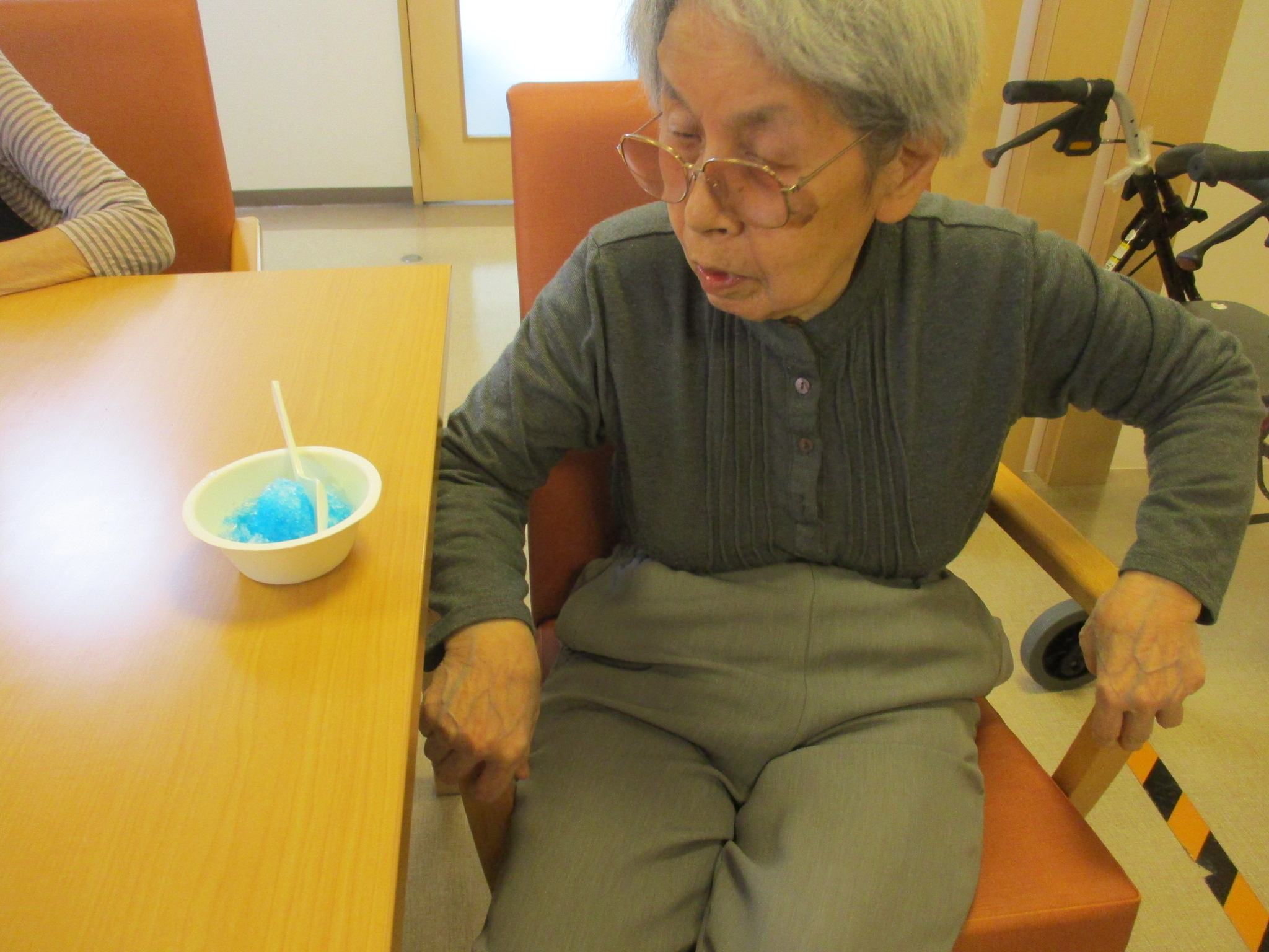 真夏の陽気の熱い日々にかき氷は入居者の皆様に大人気ででした。