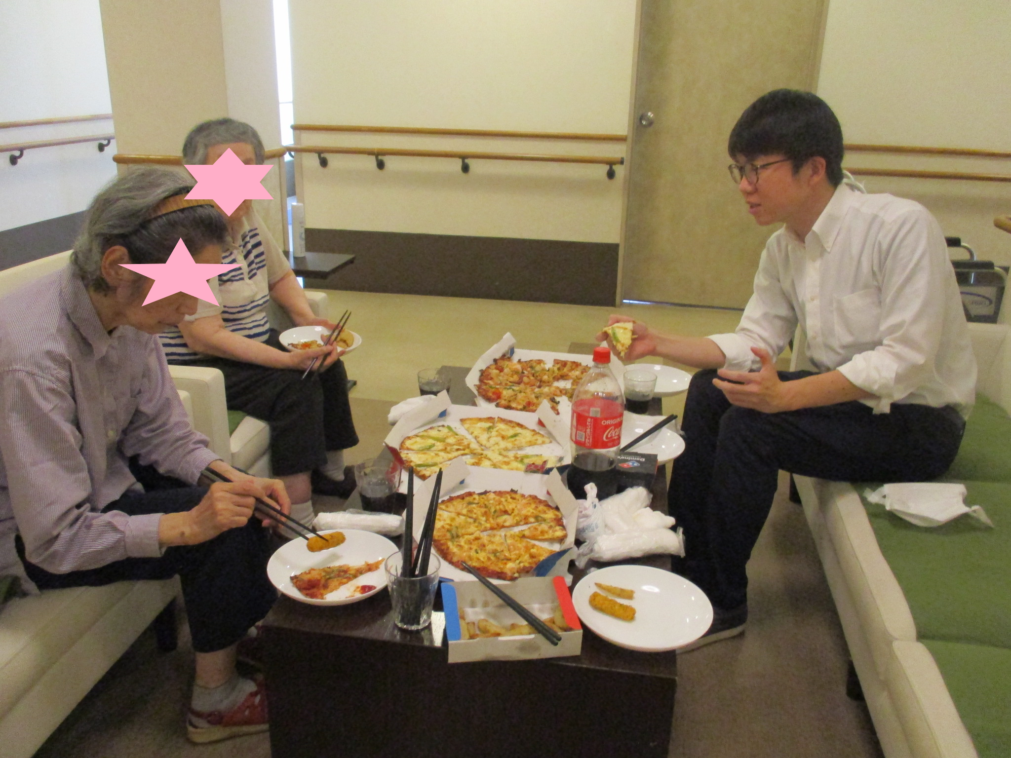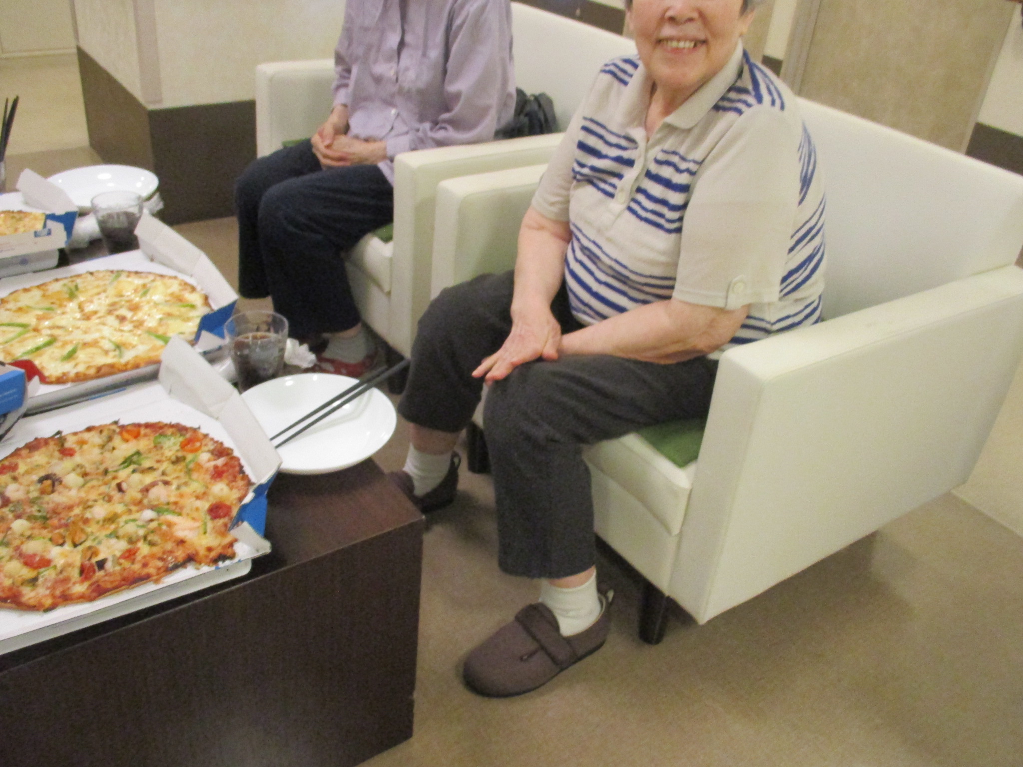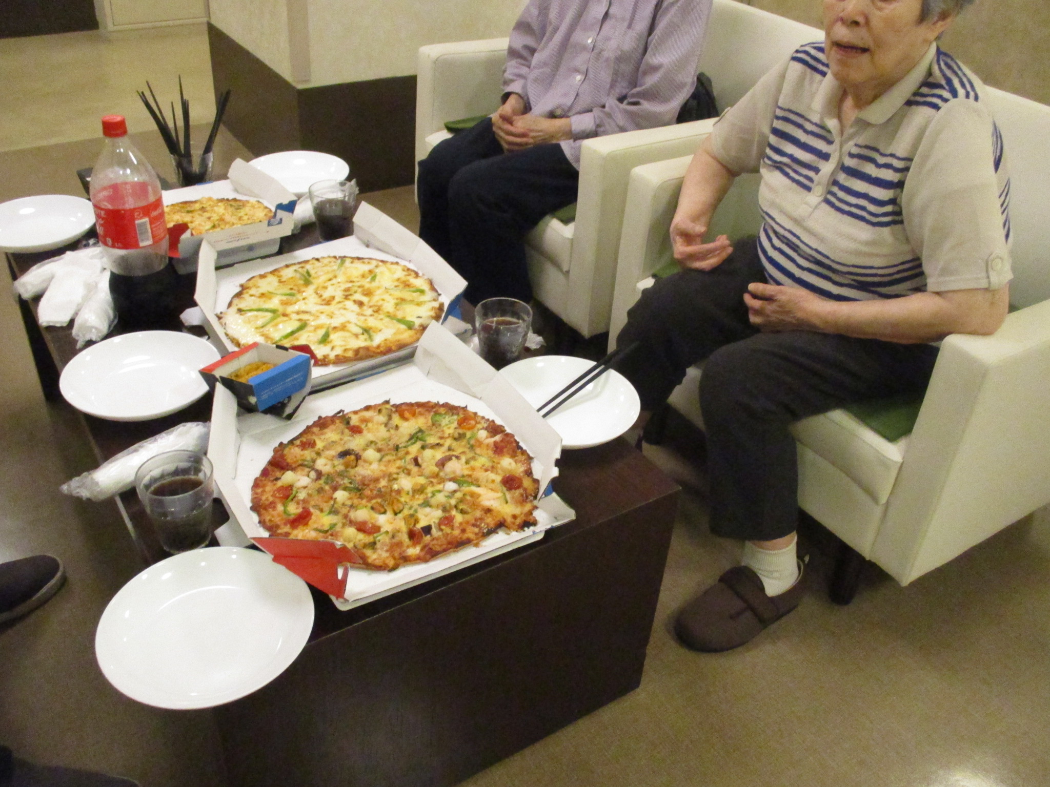 入居者様のお誕生日でご本人のかねてからの希望で本日は、ピザを注文して