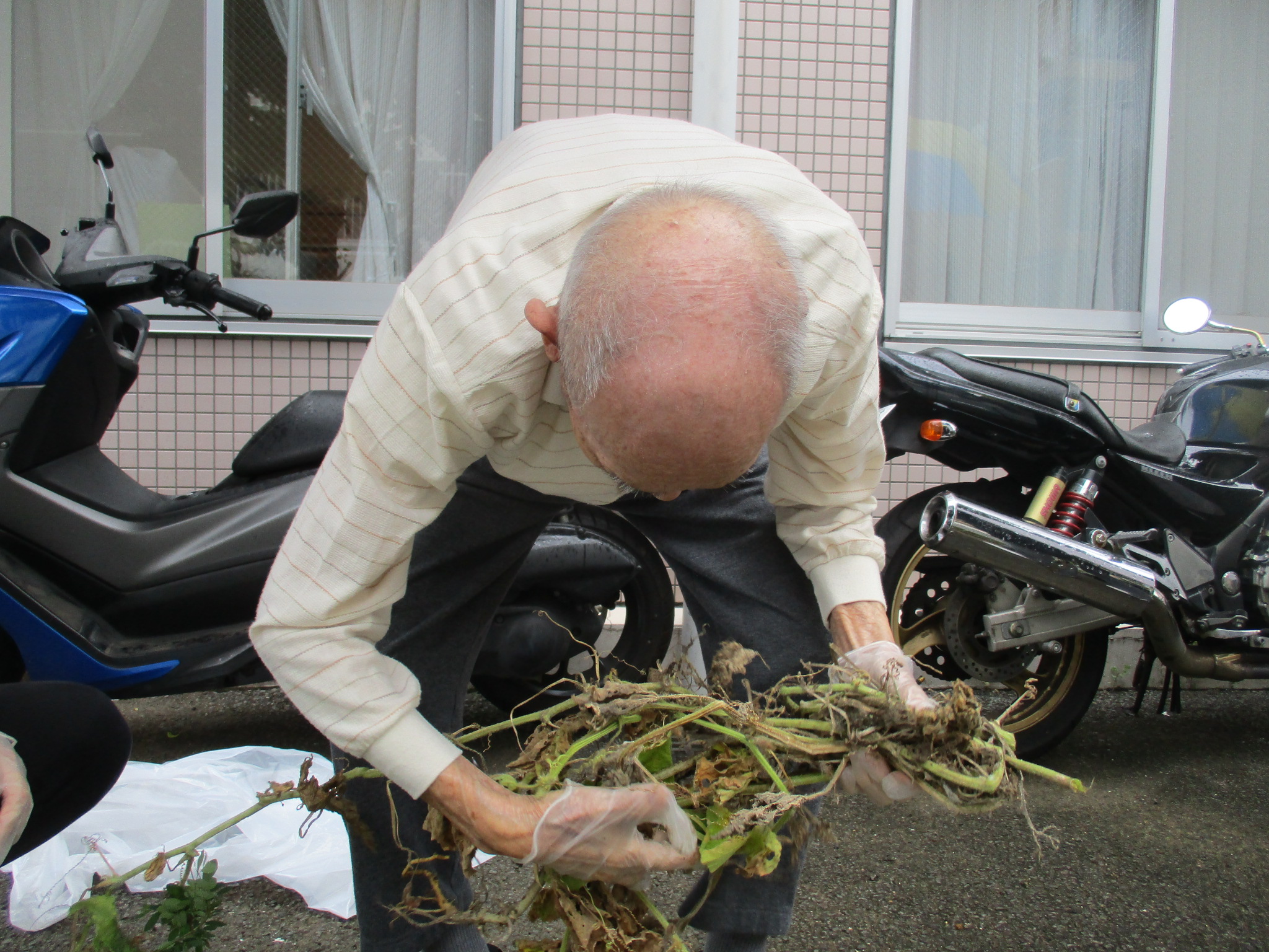 本日は園芸大好きな入居者様と夏の終わりの片付けです。