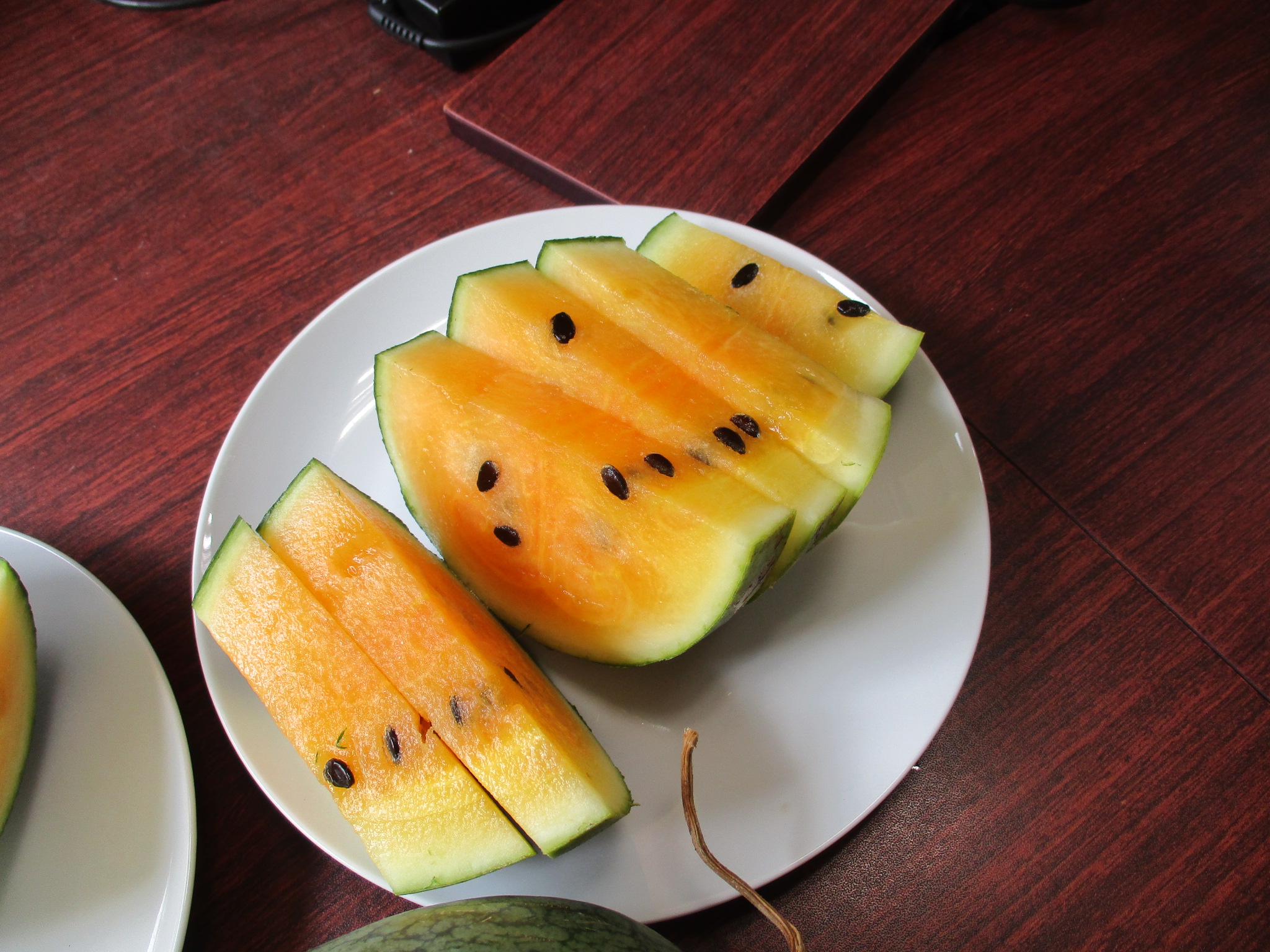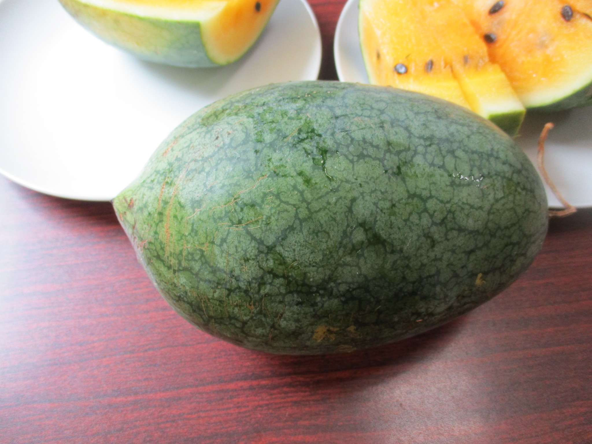 本日園芸クラブより、朝一番の収穫の小玉すいかです。