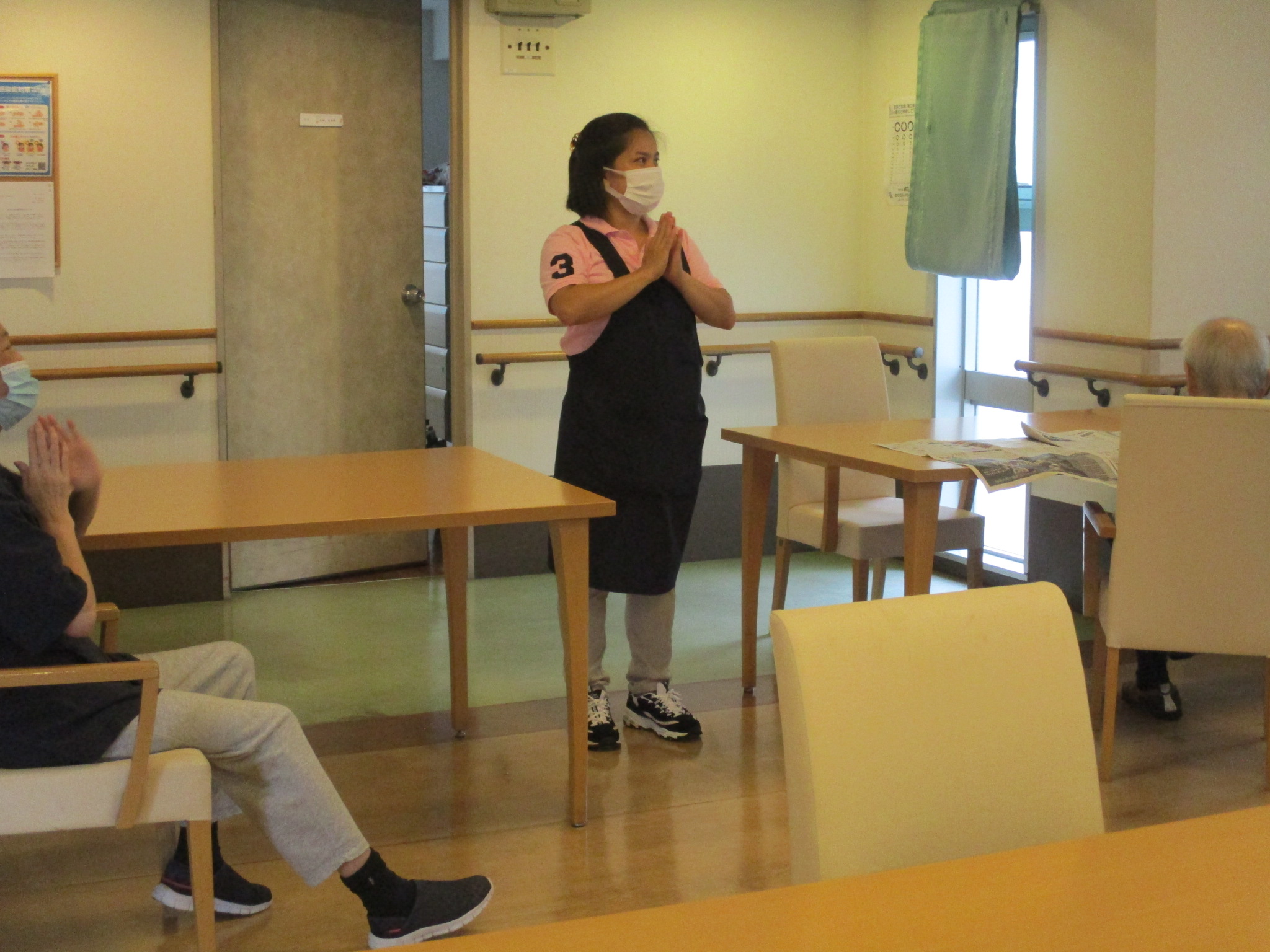 本日のアクティビティはスタッフと一緒に身体を動かそうです。