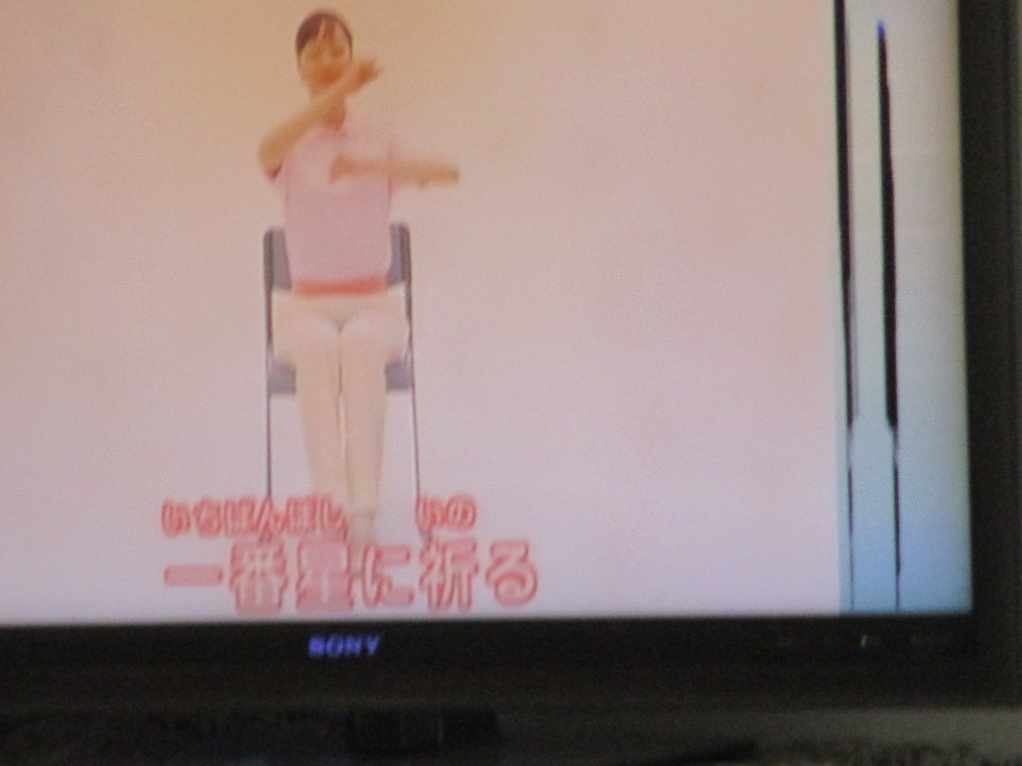 スタッフと一緒に体操のプログラムを見ながら体を動かします。