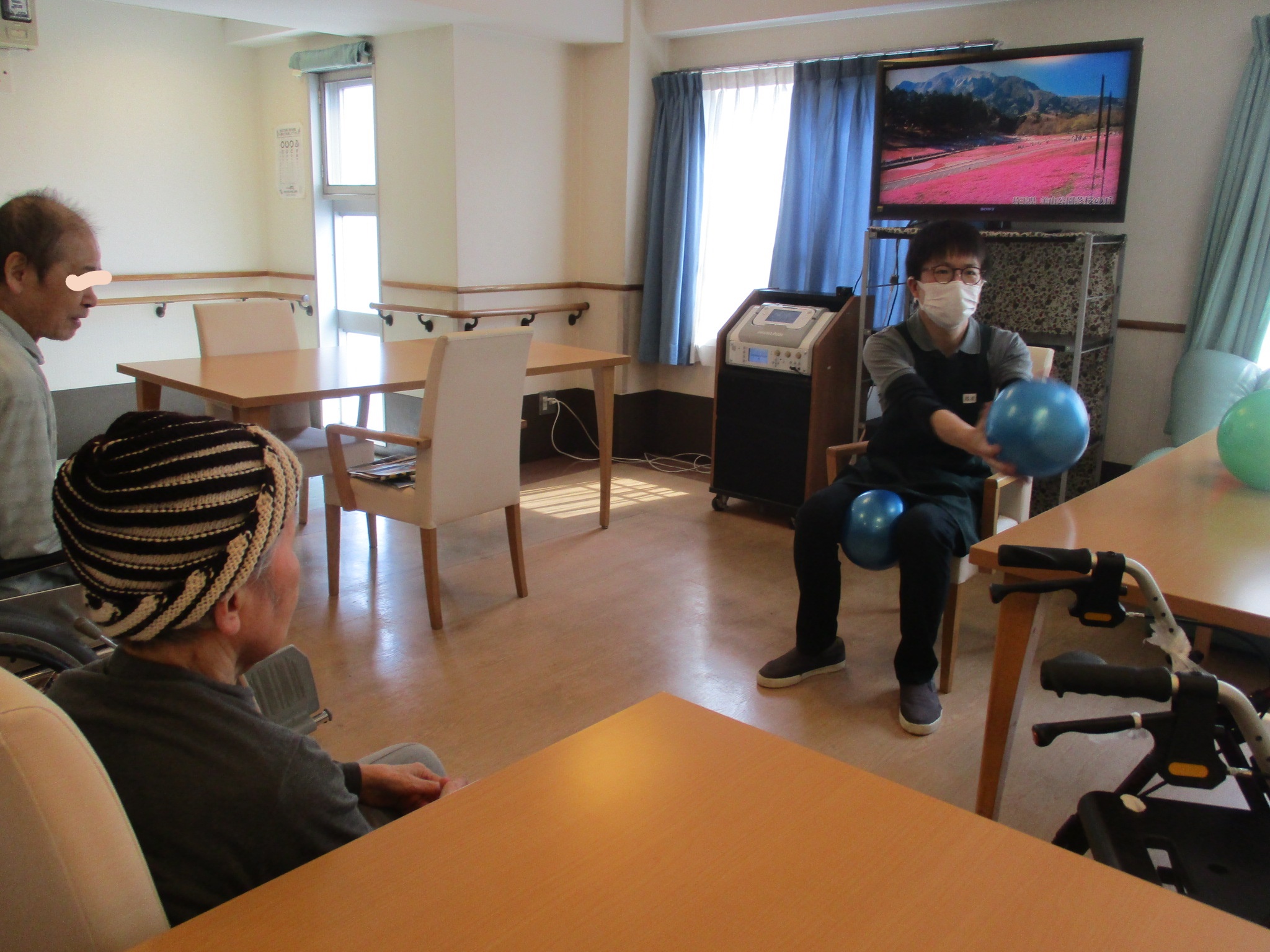 体操の先生のビデオを見ながら皆さんで行ってみます。
