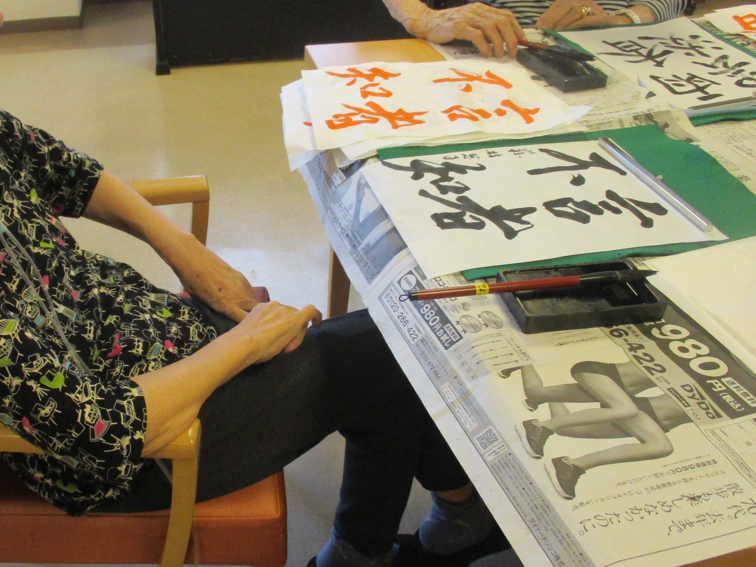 はぴね横浜の冷房の効いた涼しい環境で落ち着いて書道ができます。
