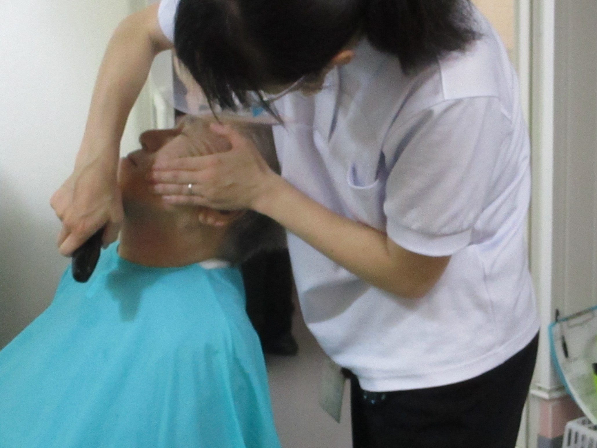 男性も髭を剃ってもらいさっぱりとしましたね。