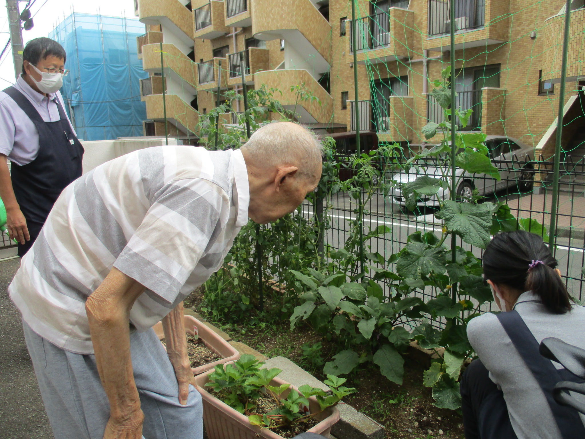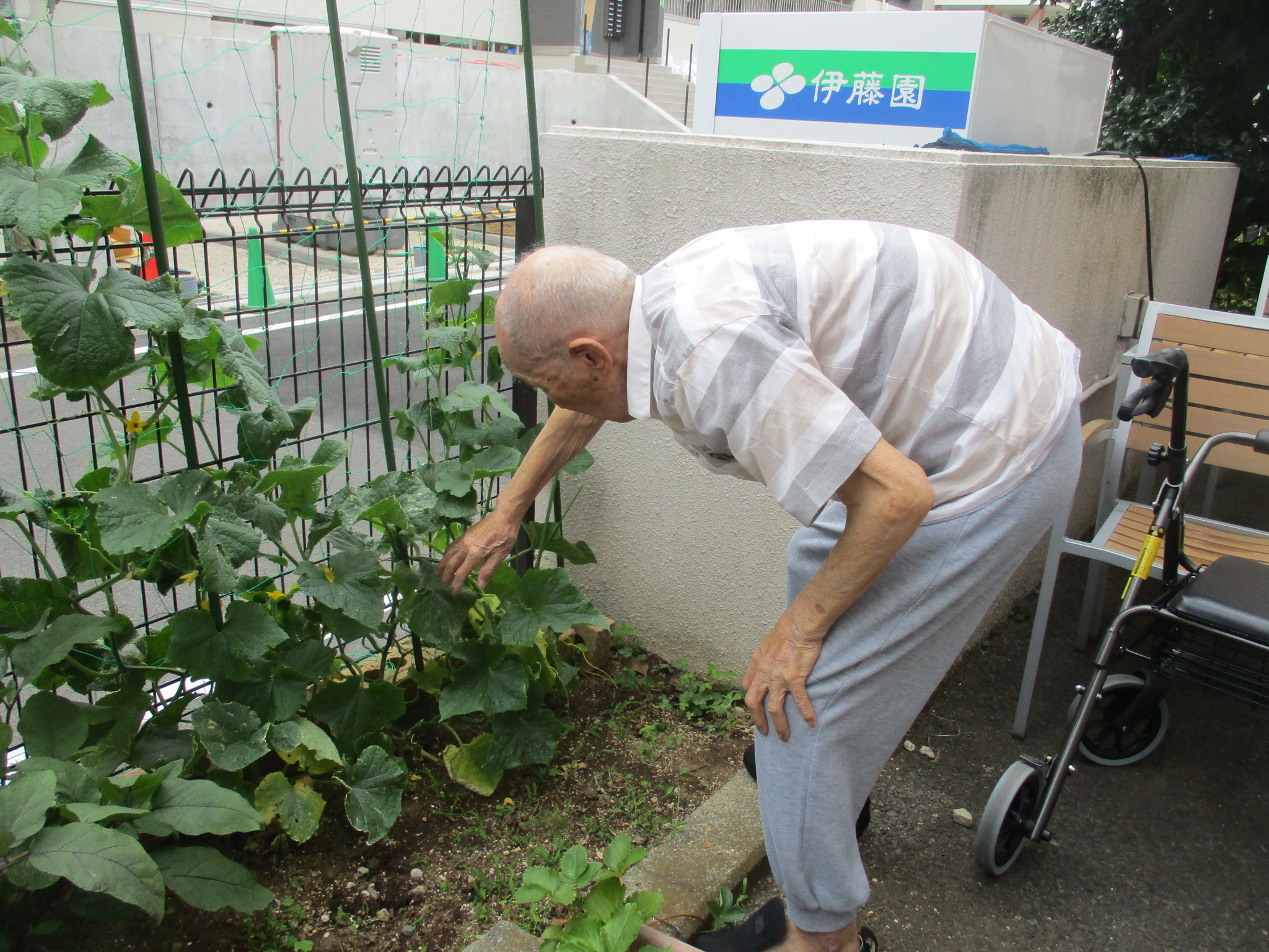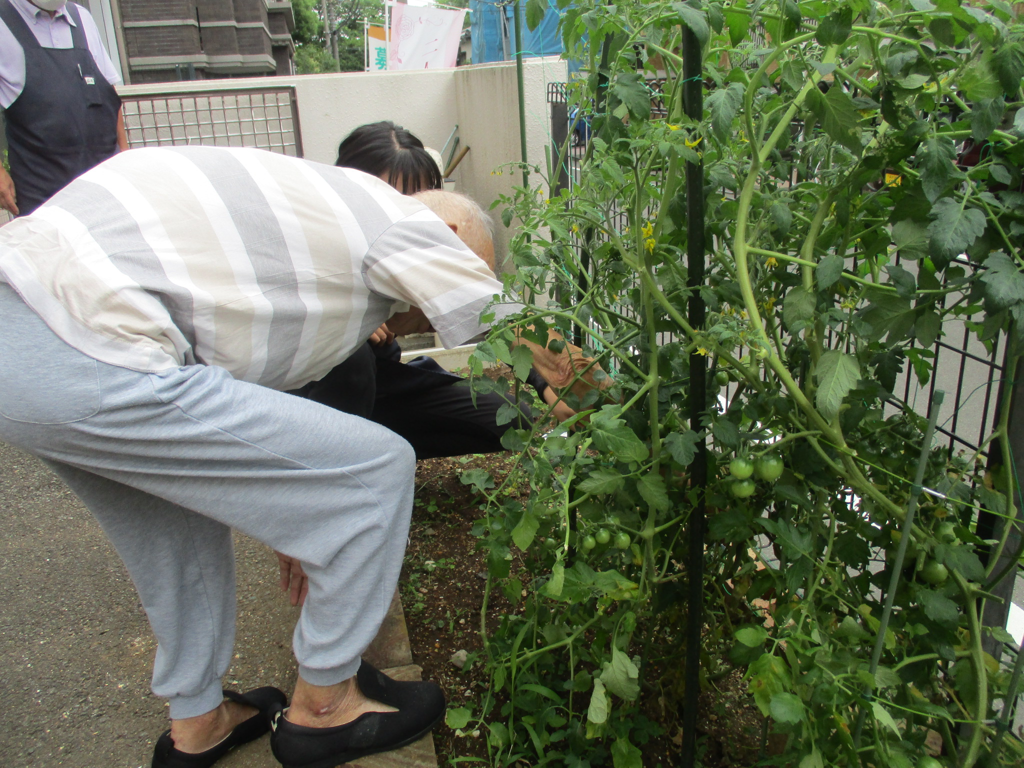 本日は園芸活動の代表の入居様と一緒に職員と収穫をしました。