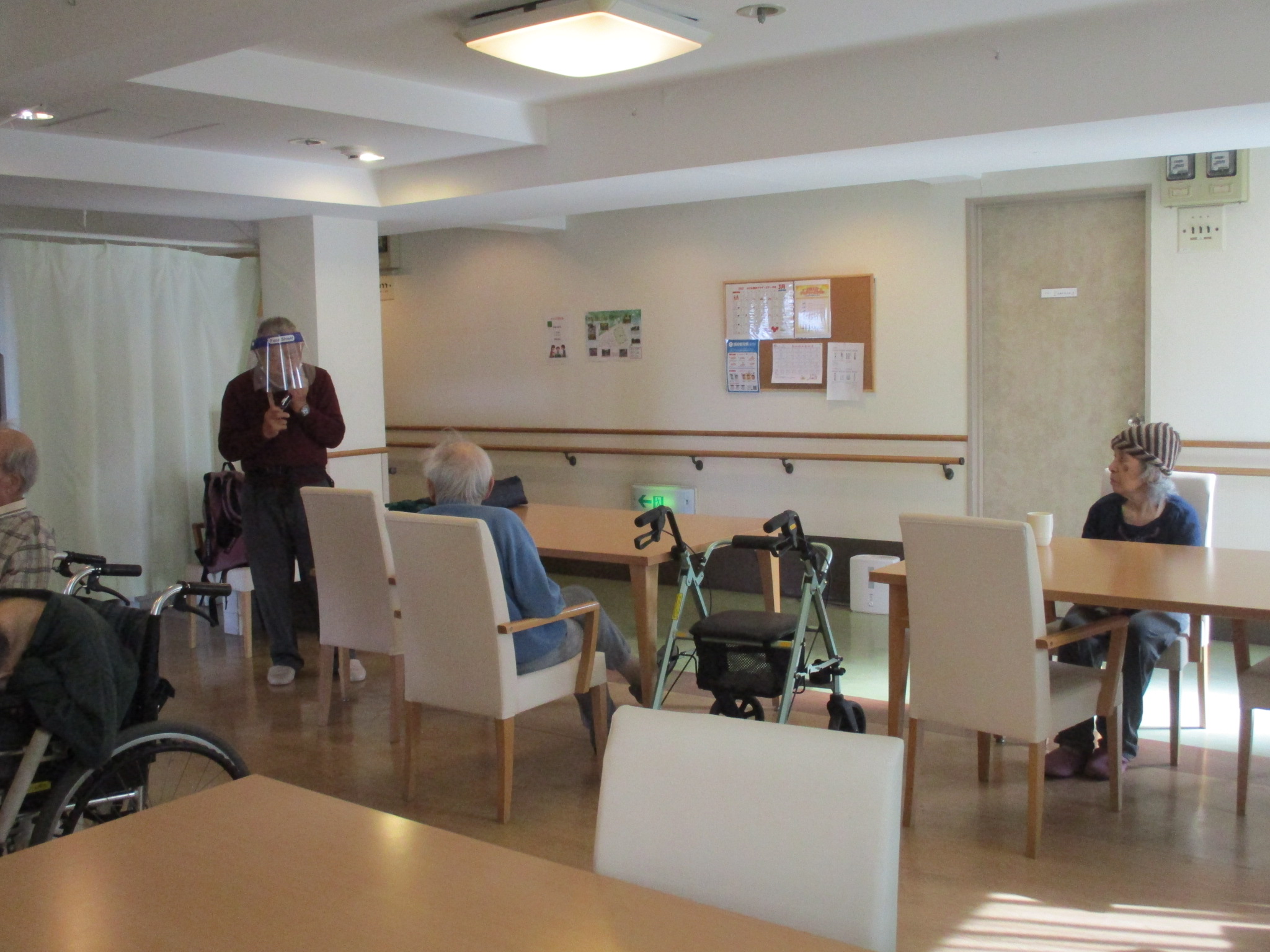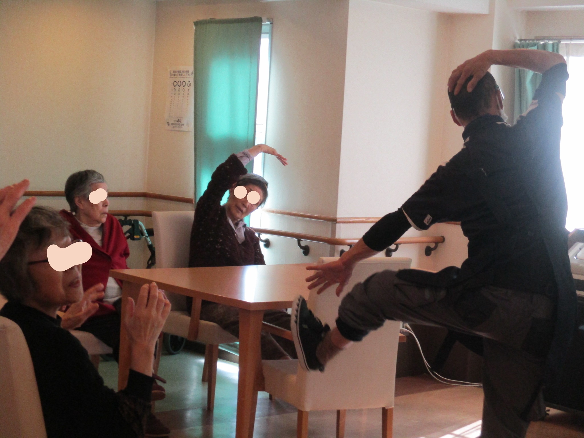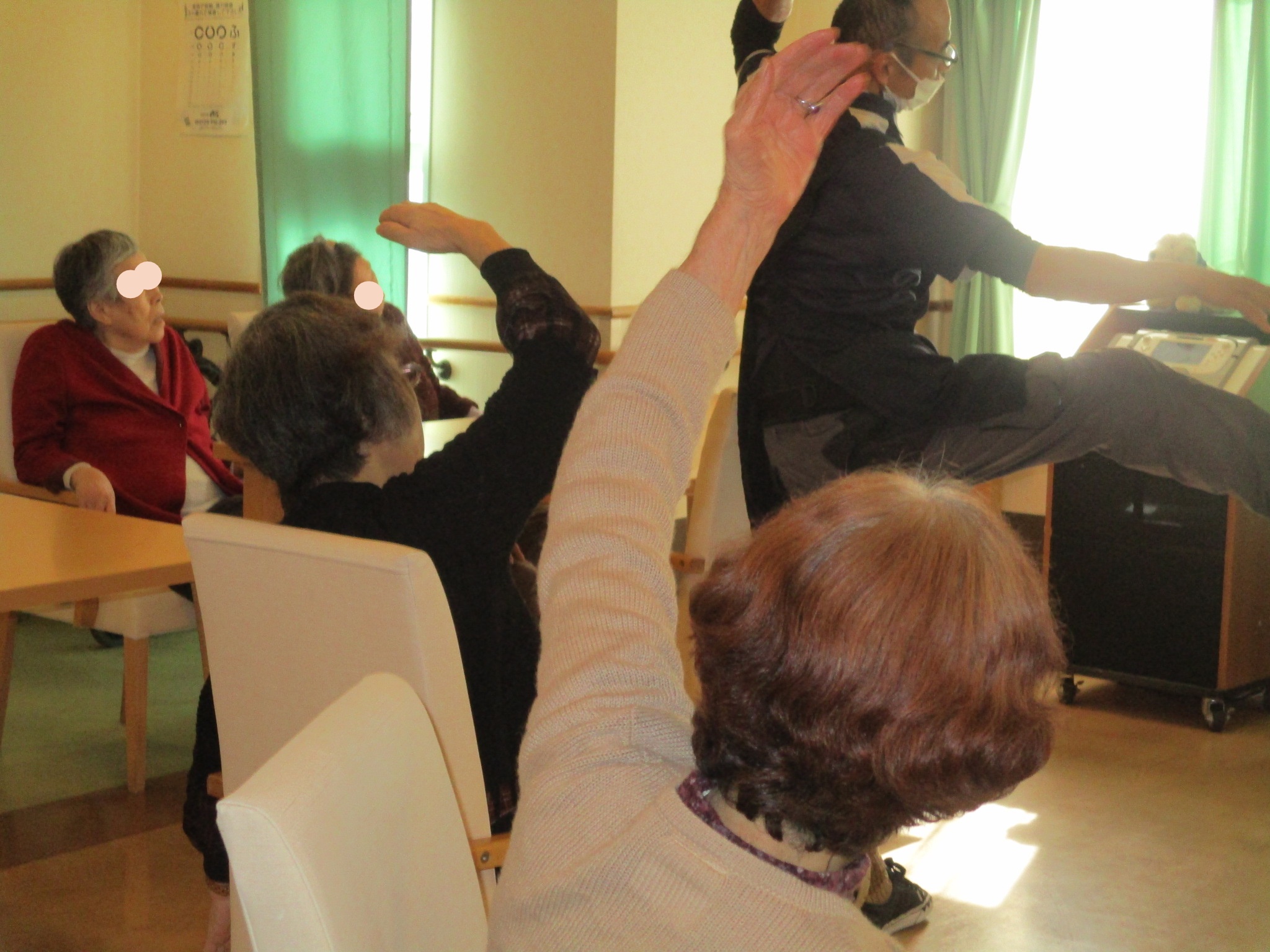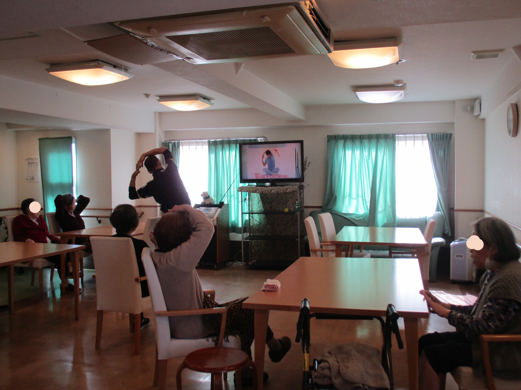 職員の体操を見ながら入居者の皆様も一緒に体操を行います。