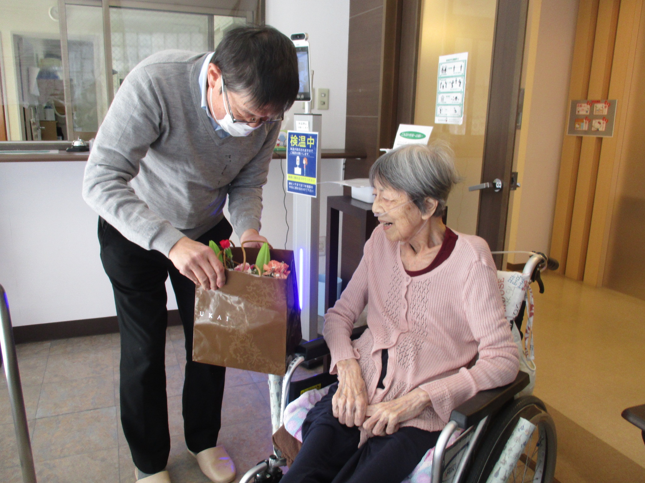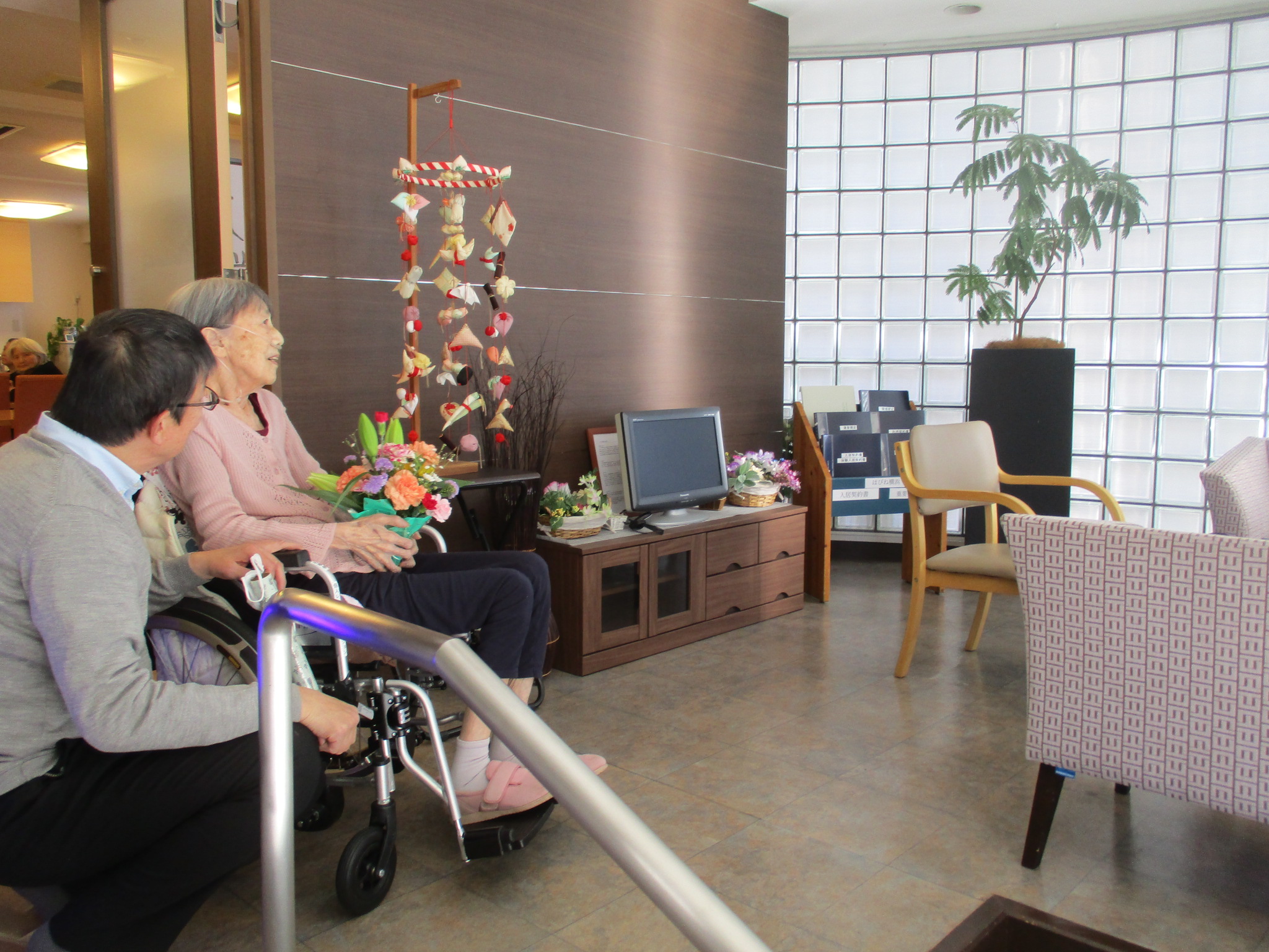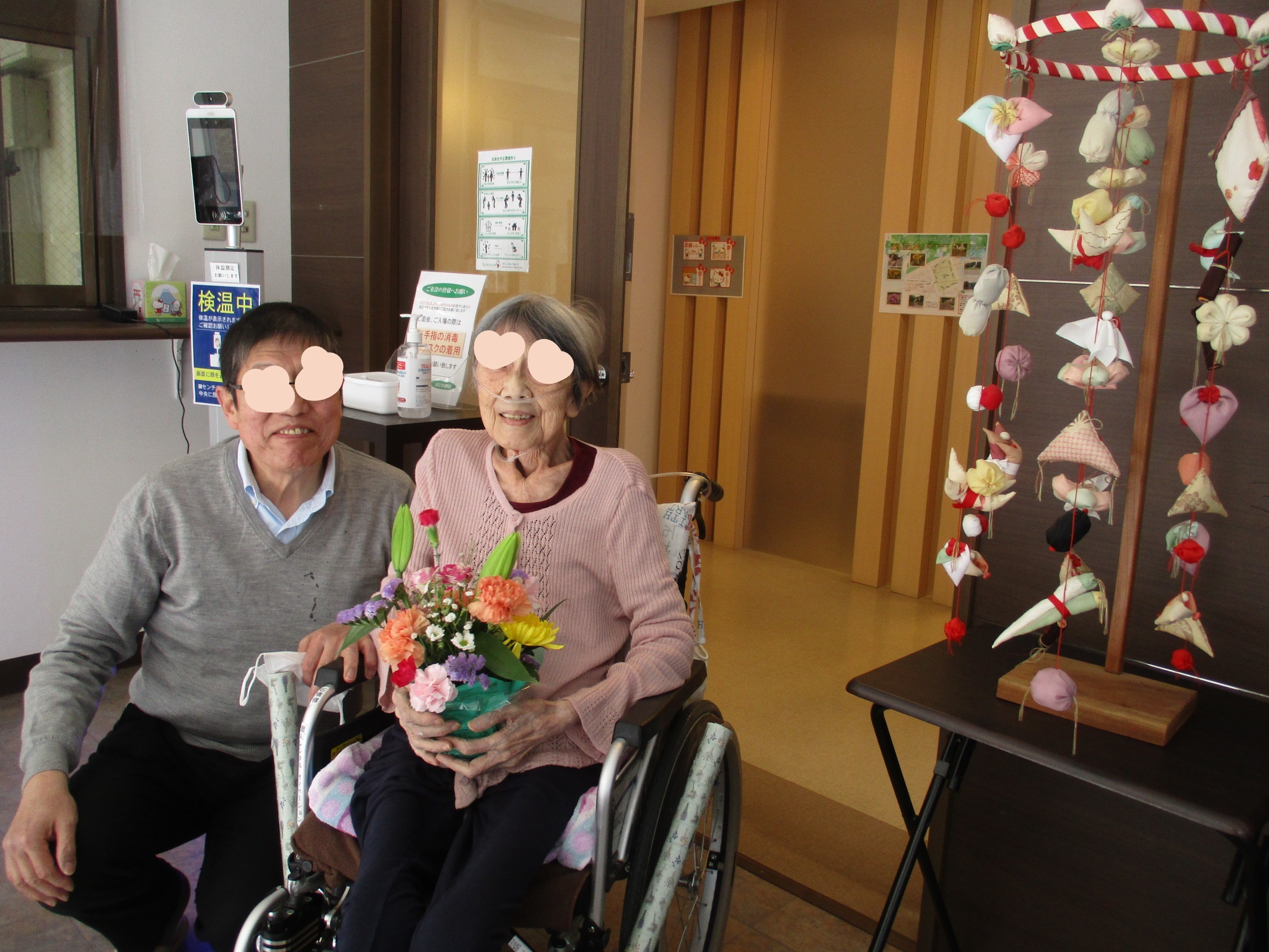 お雛様にぴったりのお花をもってご家族様が来館されました。