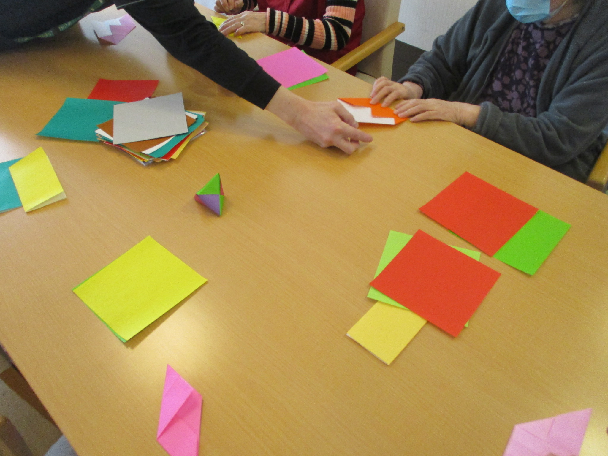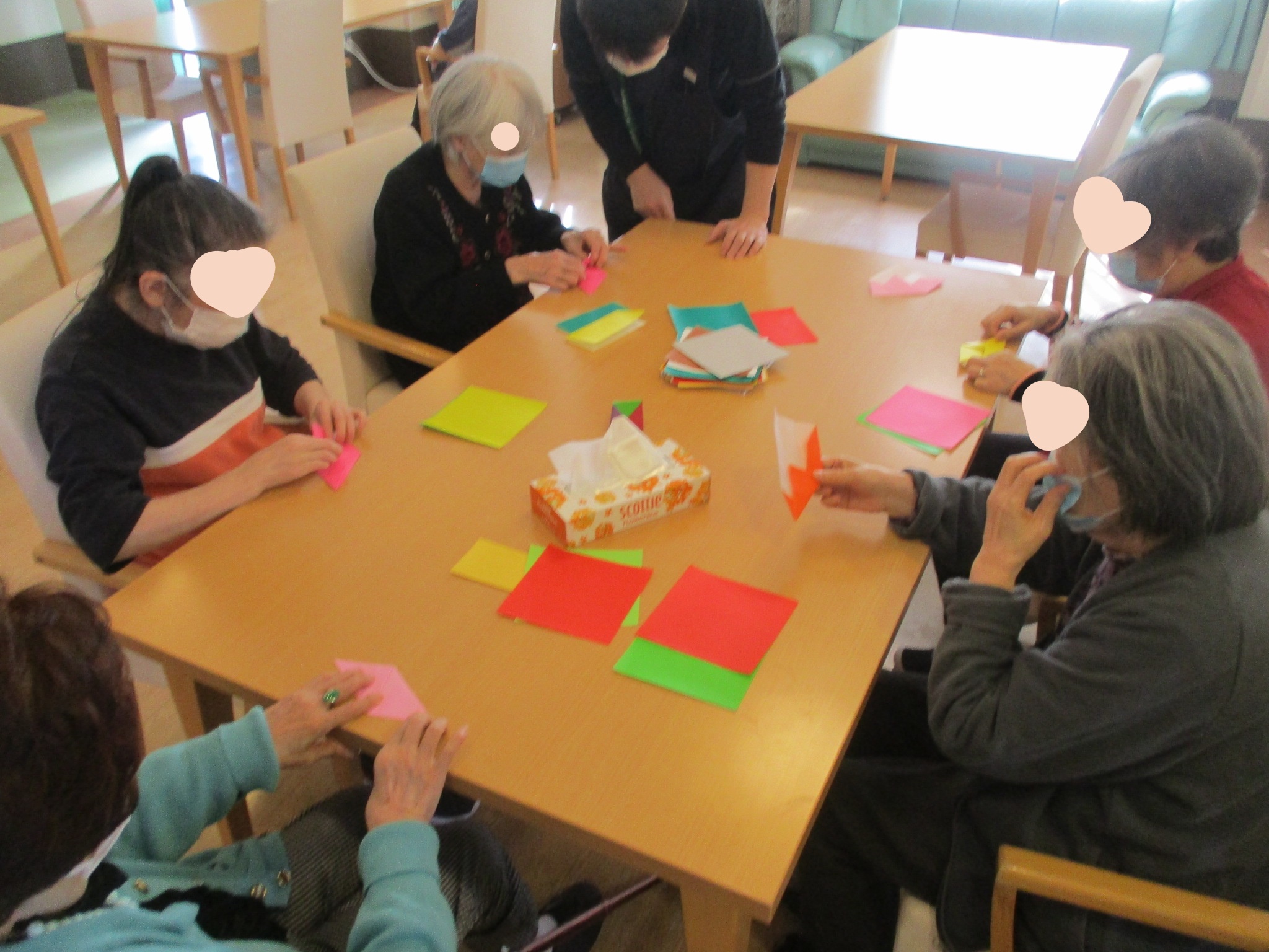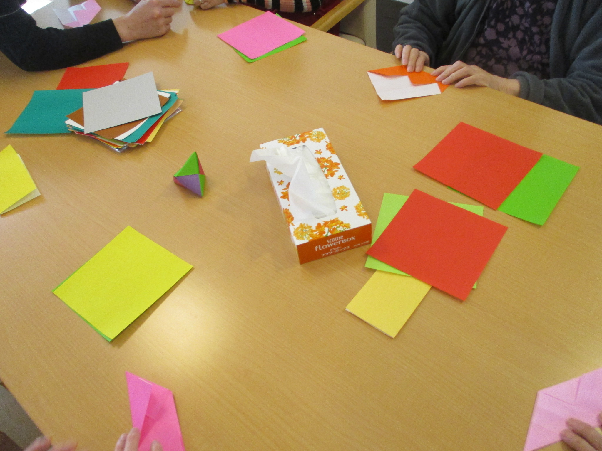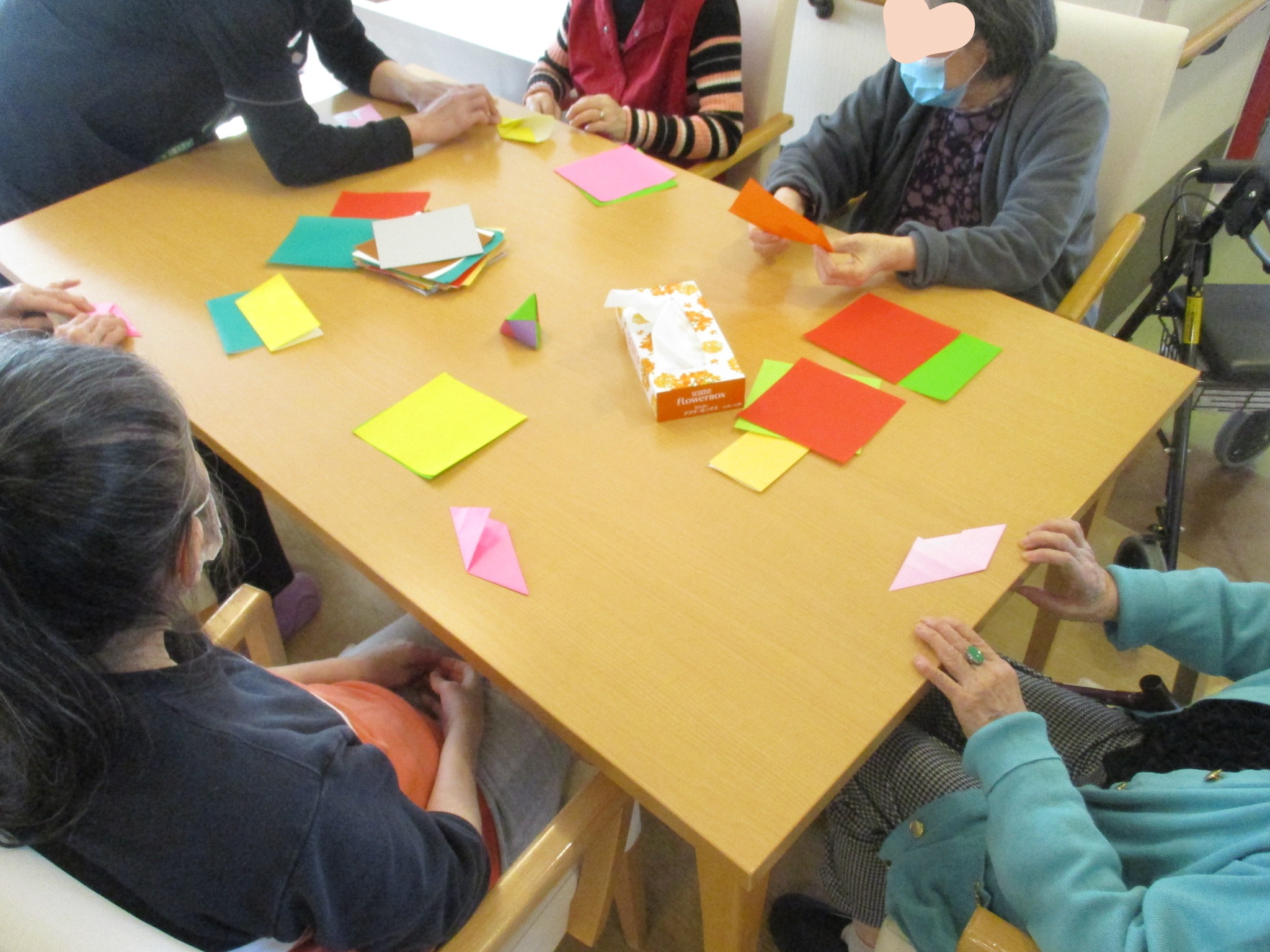 本日の午後のアクティビティはスタッフと一緒に折り紙です。