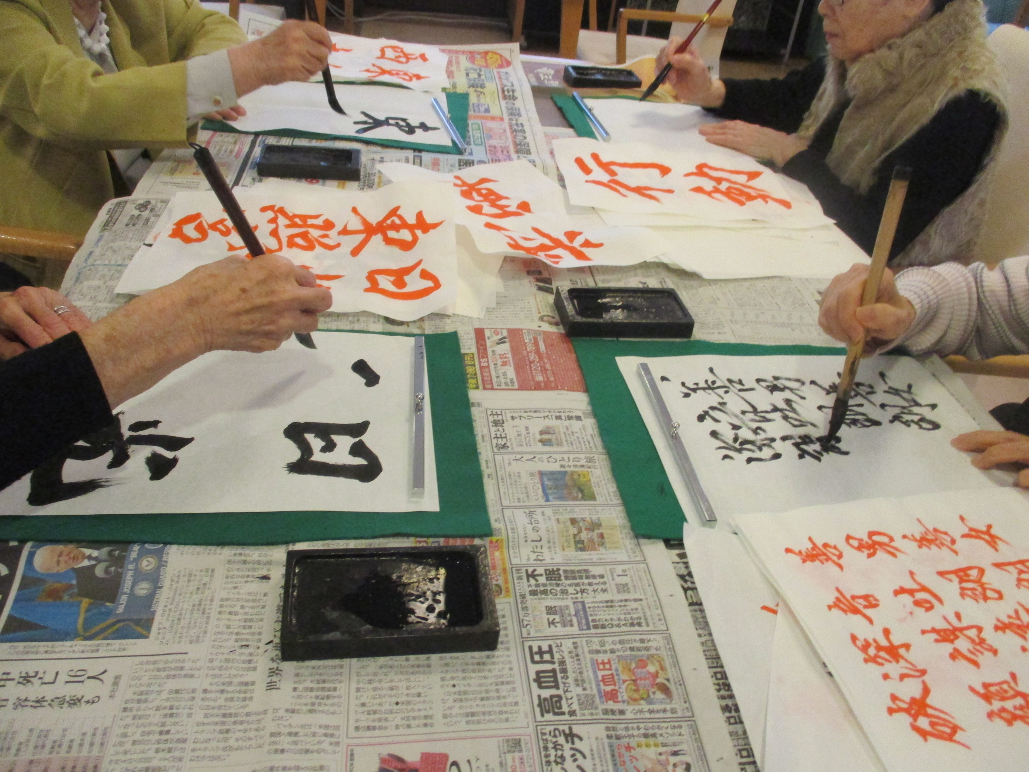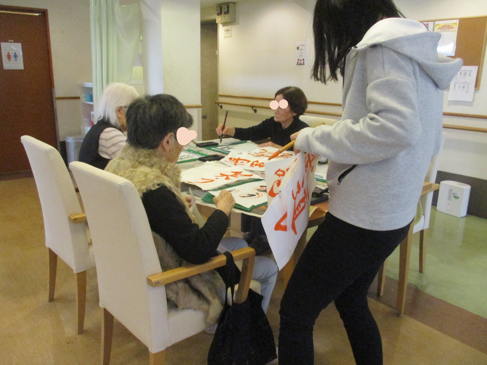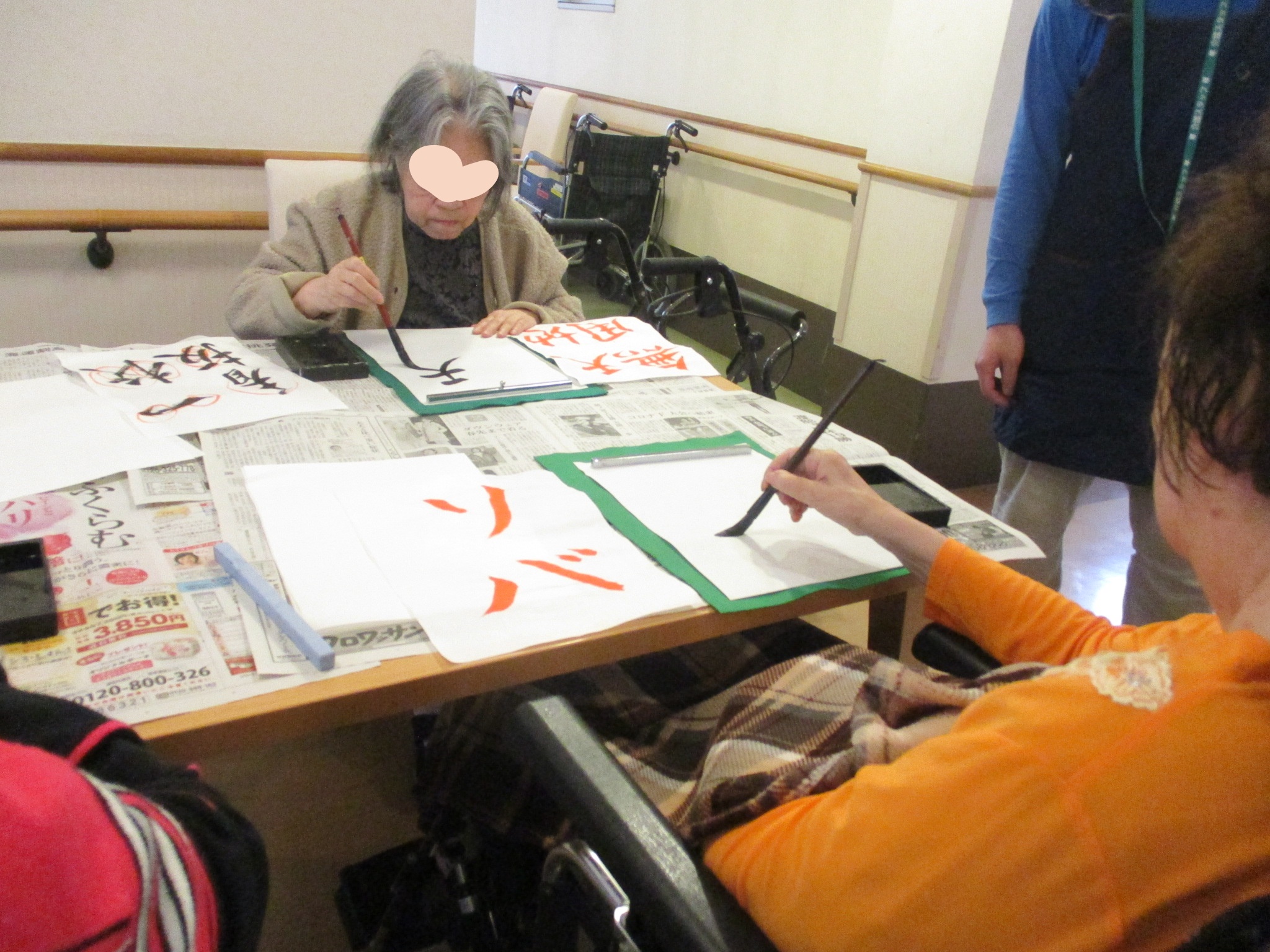 書道が大好きだった新しくご入居されました、E子様筆を持ったら一生懸命になっています。