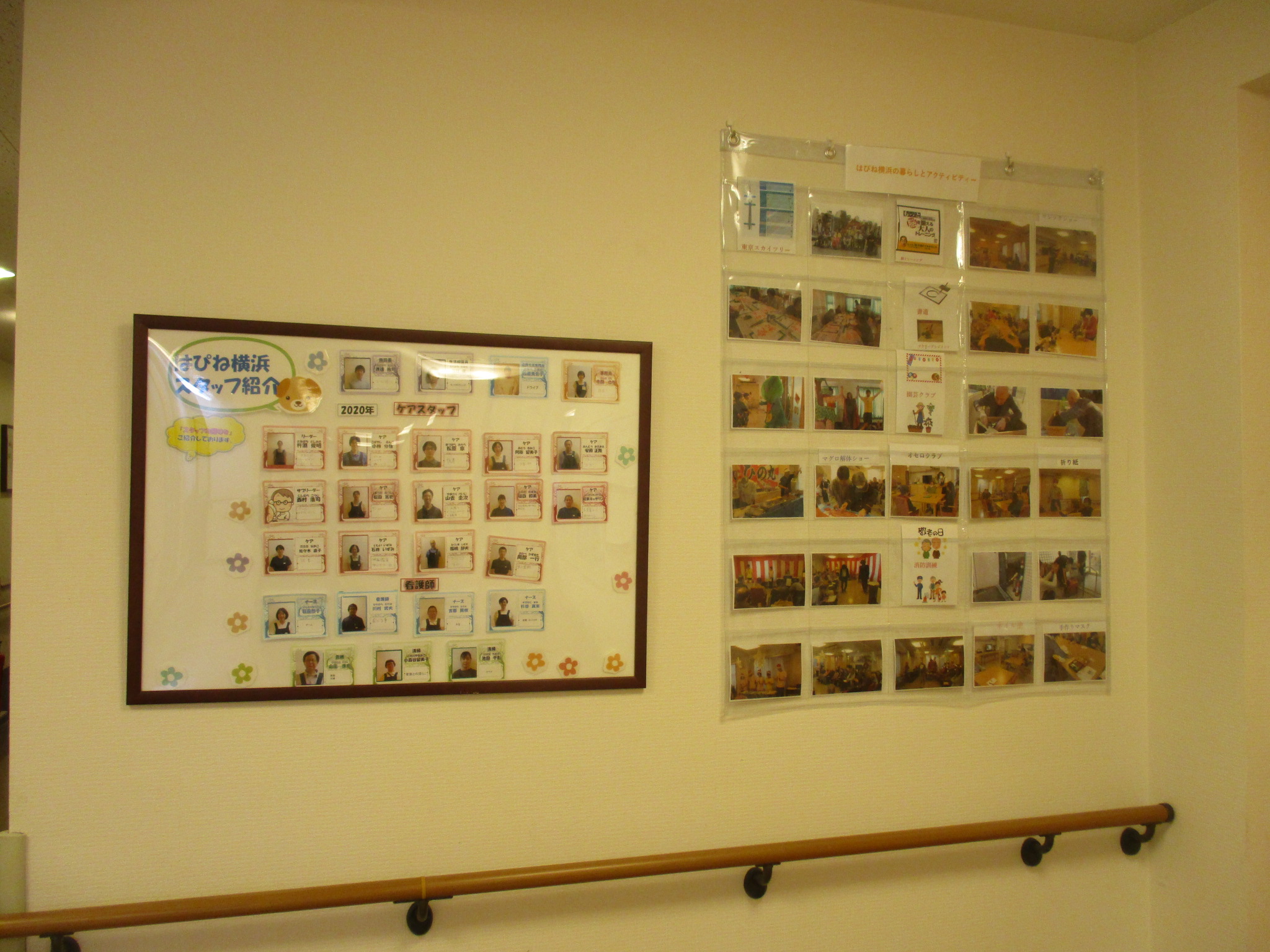 一階のスペースには、はぴね横浜ののアクティビティの写真やスタッフの写真を掲示しています