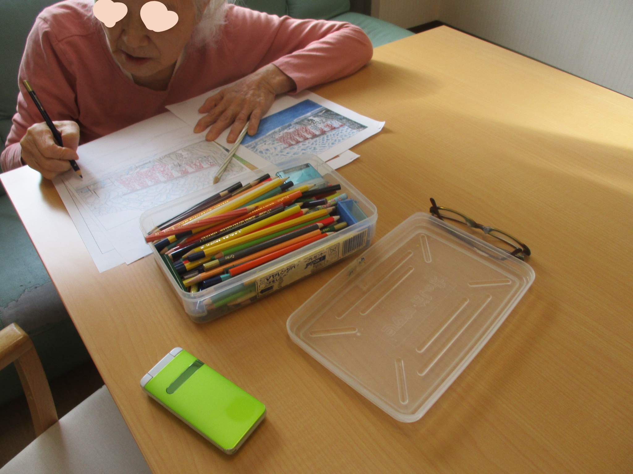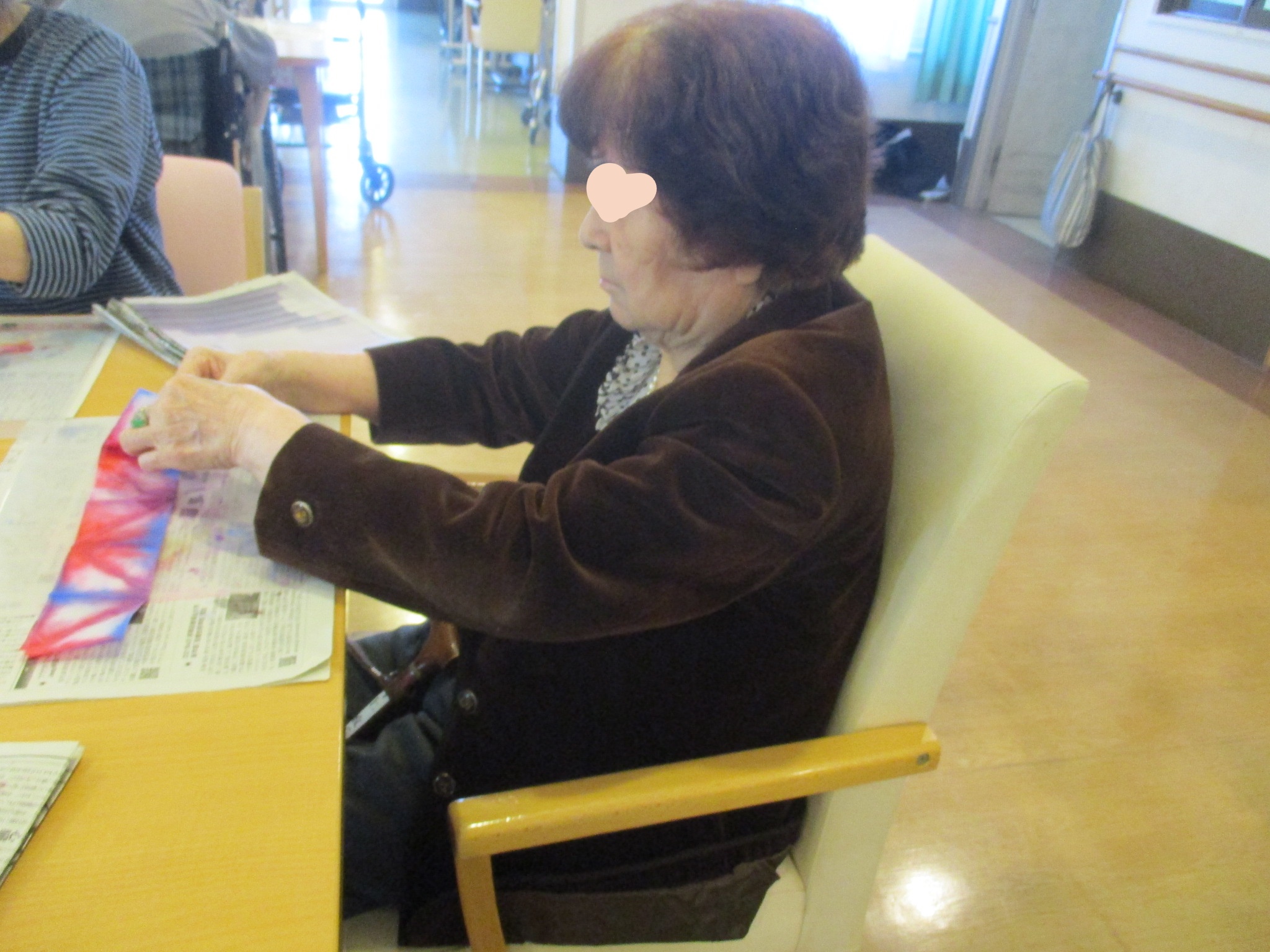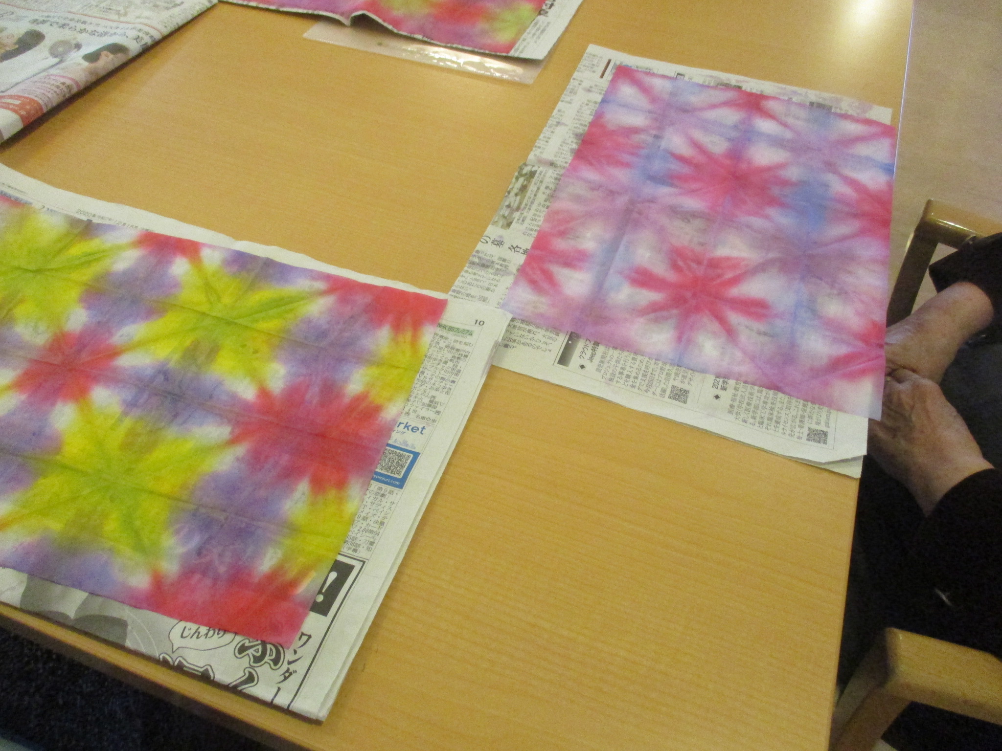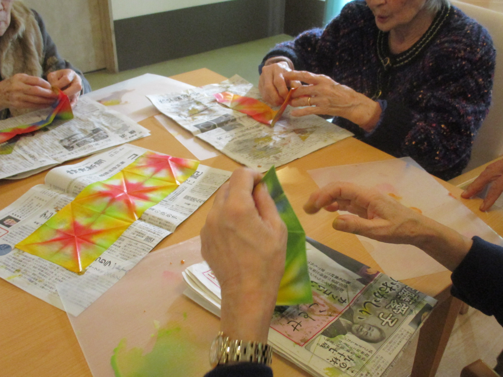半紙を小さく織り込み、少しづつ色を入れていきます。