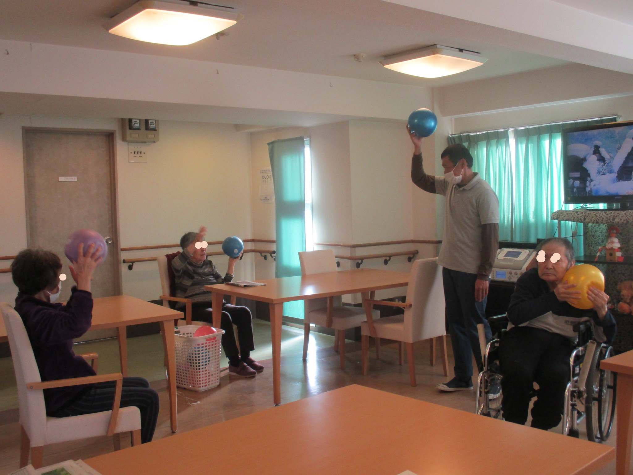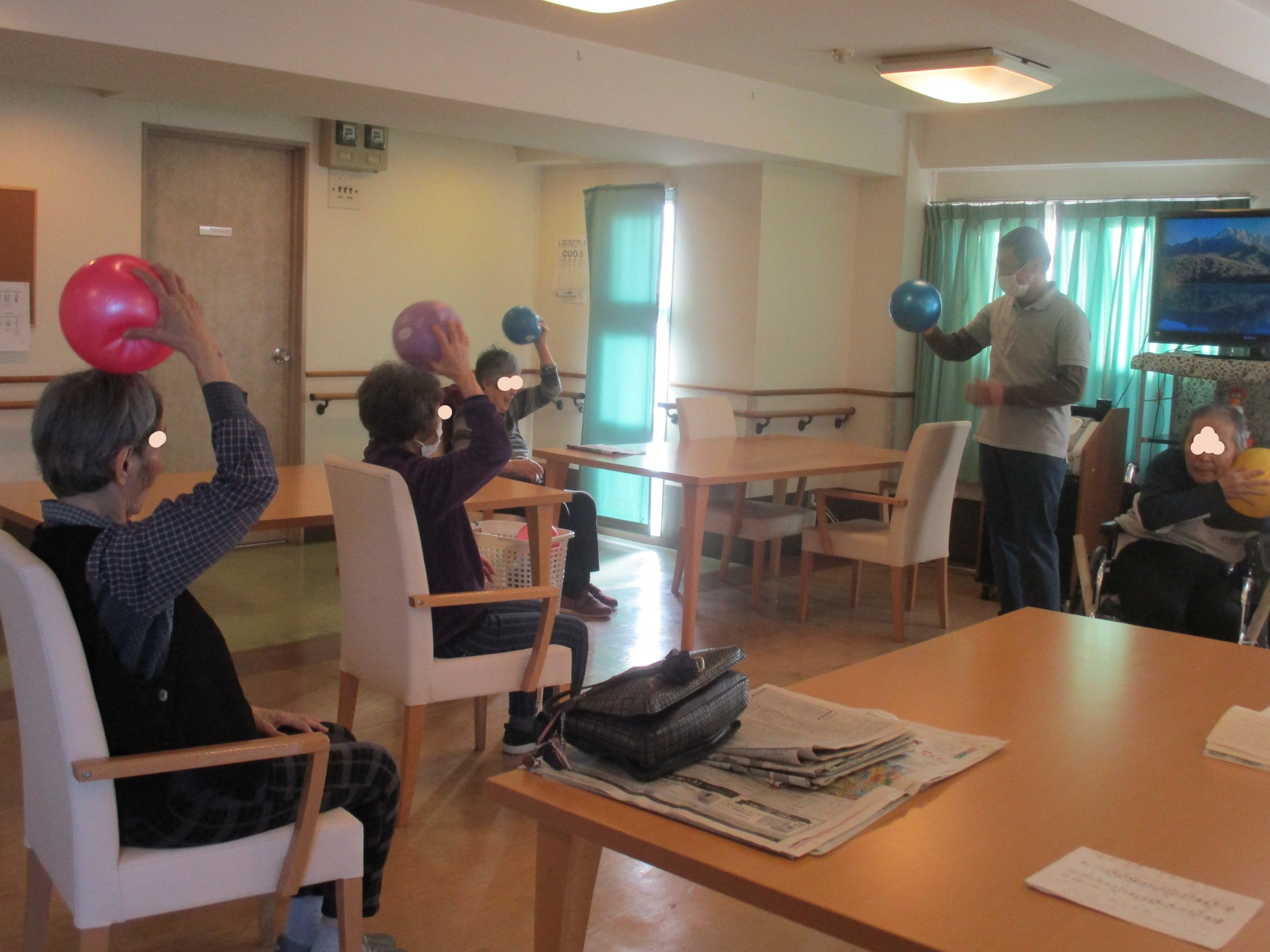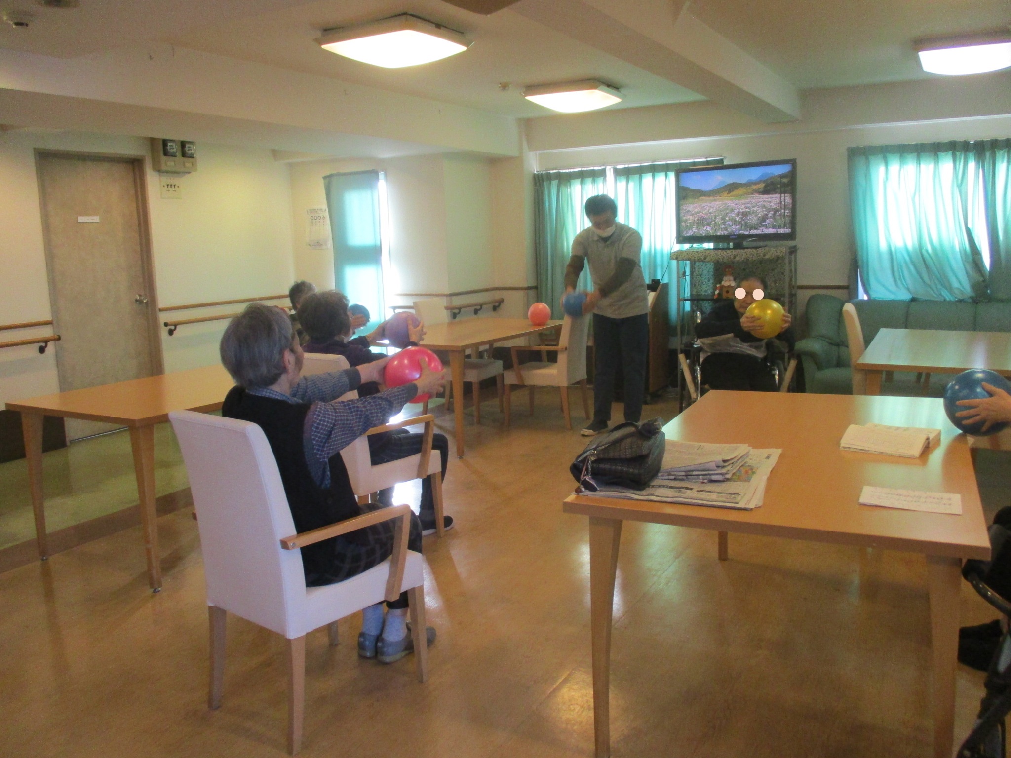 スタッフによるボール体操は入居様に評判がとっても良いです。
